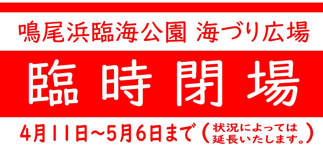 鳴尾浜臨海公園海づり広場は、新型コロナウイルスの感染拡大防止のため、令和2年4月11日(土曜日)から令和2年5月6日(水曜日)まで臨時休場します。