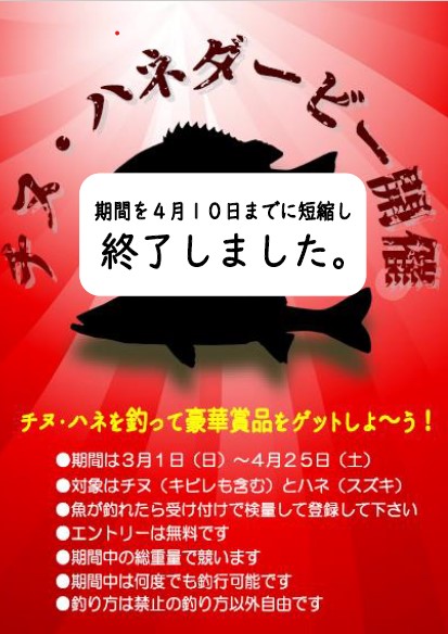 【 4月25日まで予定しておりましたチヌハネダービーについて 】