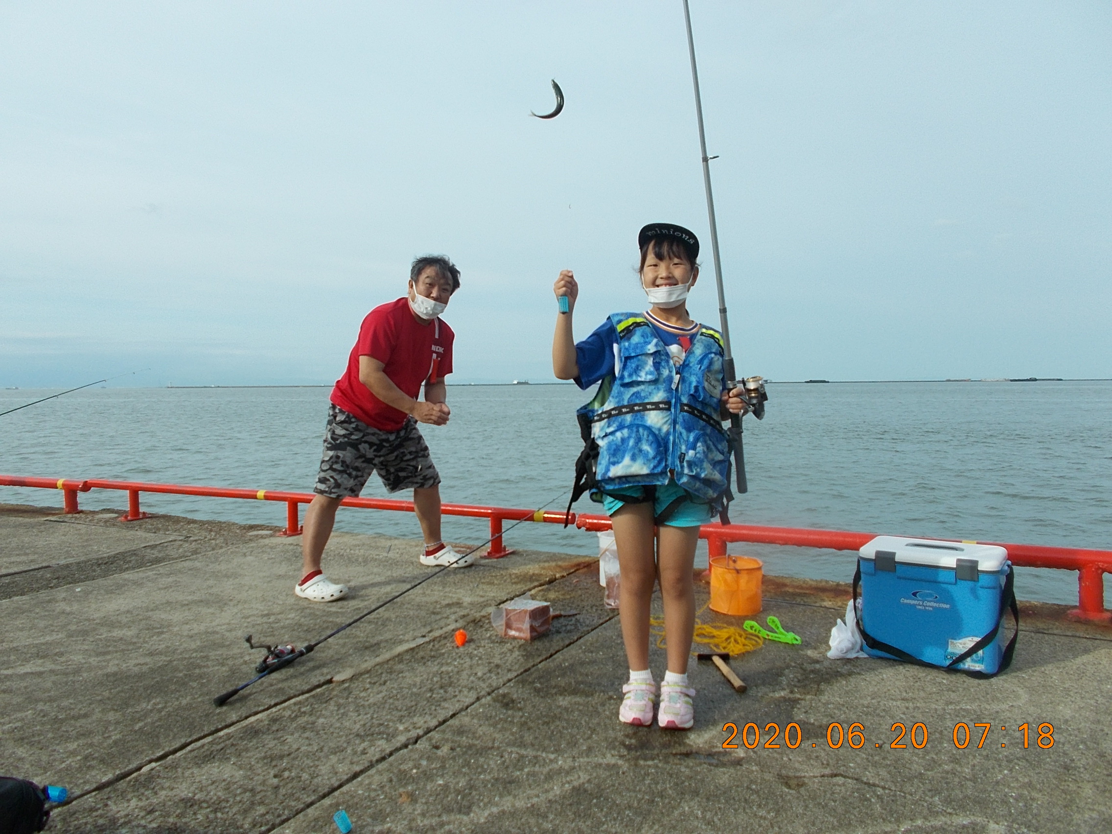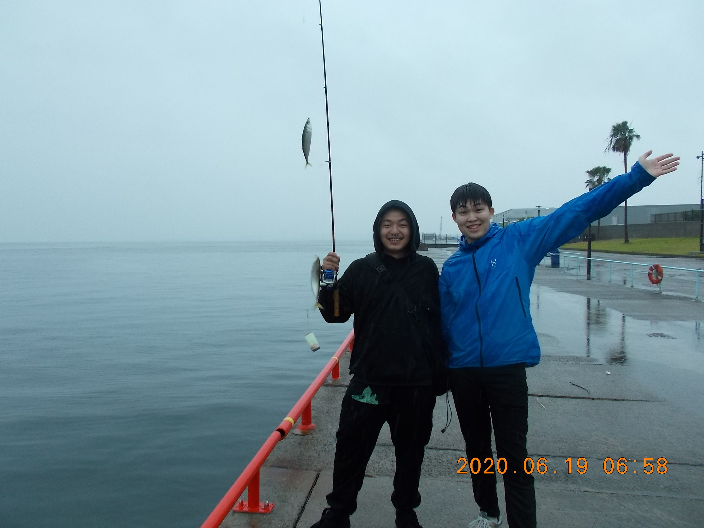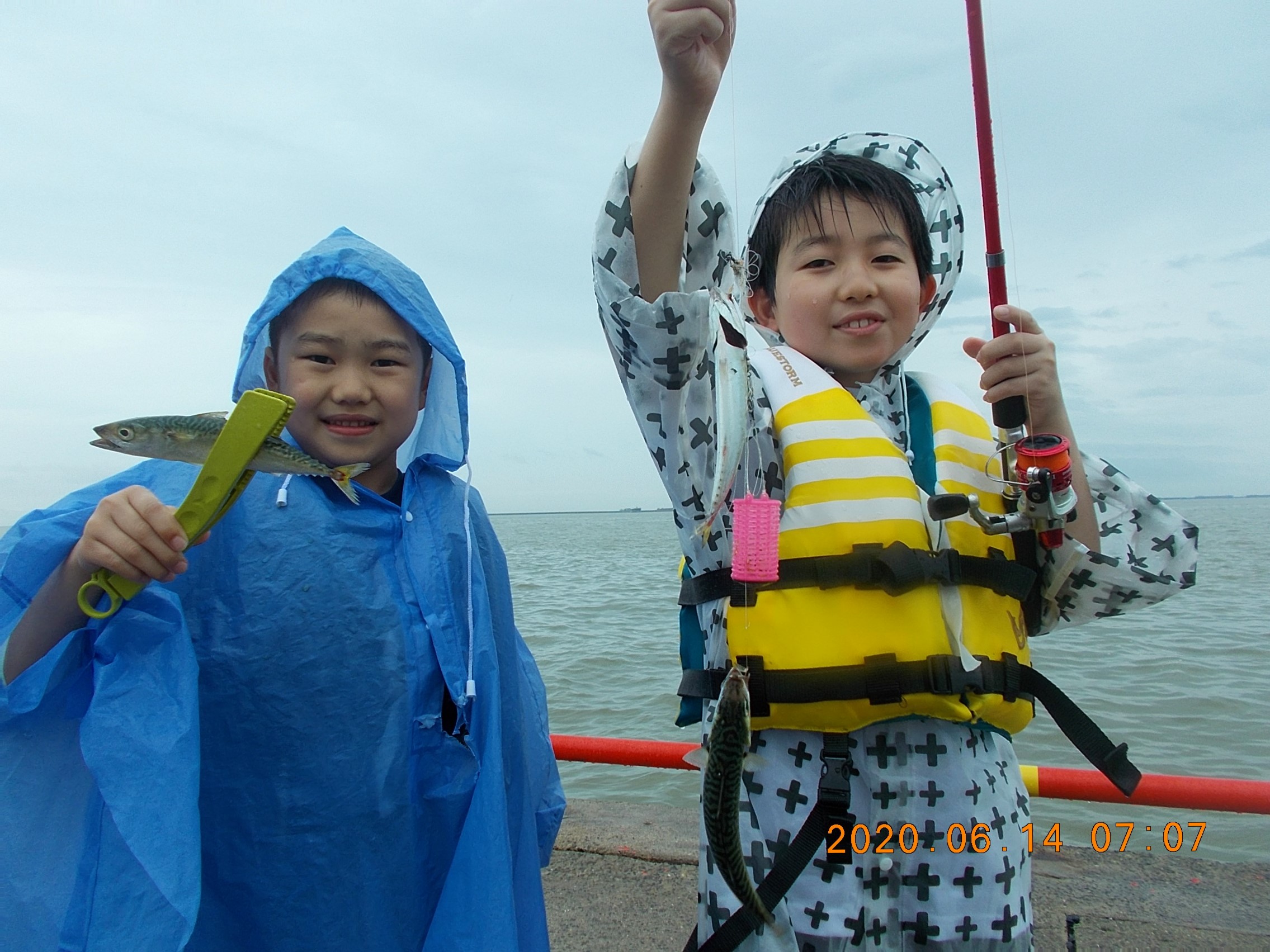 午後2時現在、まだ雨降っています。お客様は少ない状態ですが、チラホラとサバが釣れています。気温24℃風が、少々でてきましたが波は穏やかです。