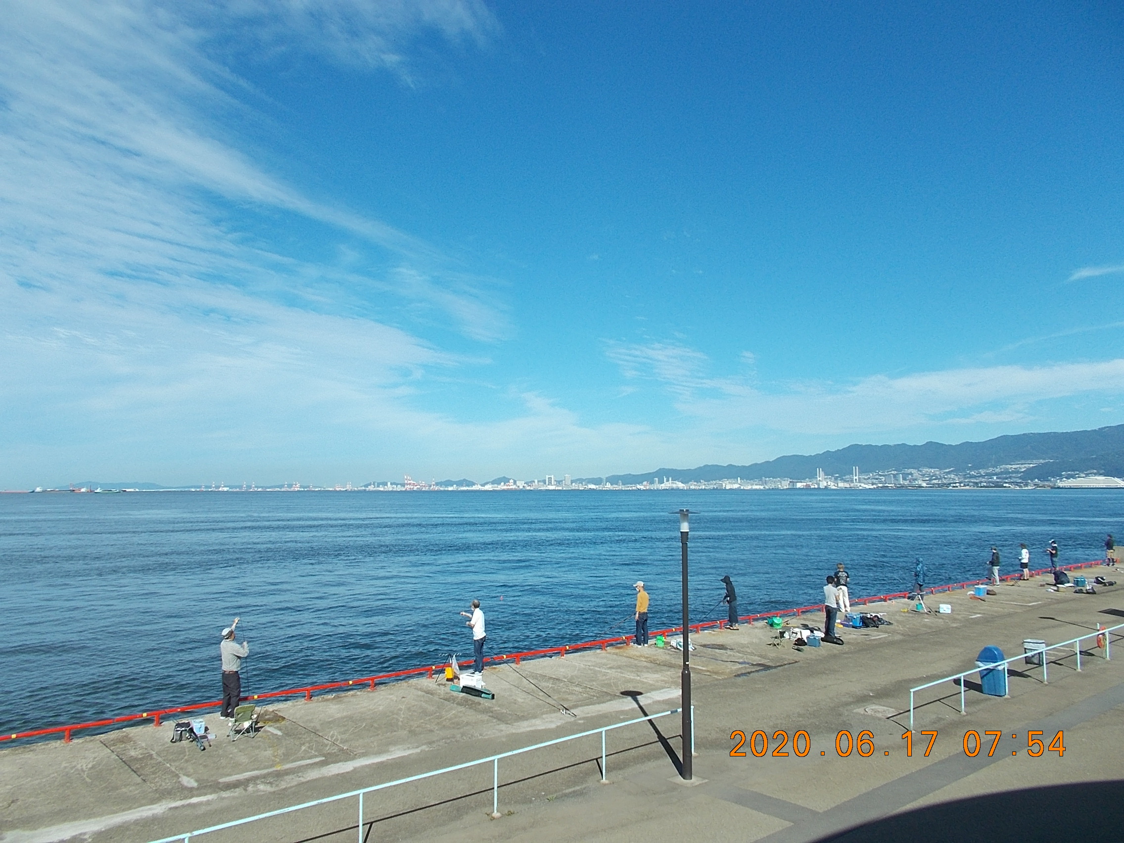 早朝涼しかった鳴尾浜も。日が照りだしました、南西の風(4~6m)が強くなってきましたが蒸し暑く感じます。