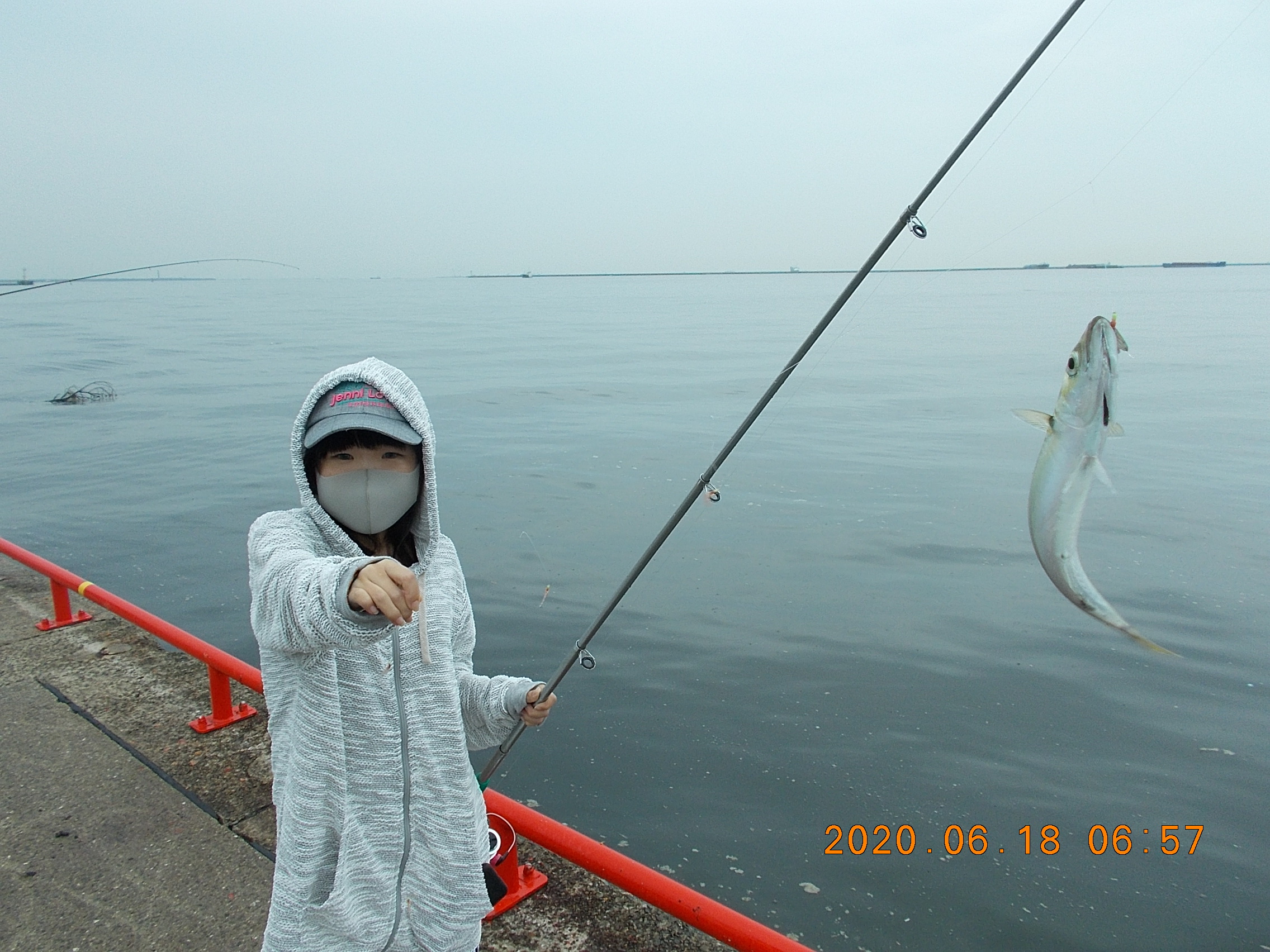 8時現在、断続的に雨が降っている鳴尾浜ですが、相変わらずサビキ釣りでの小サバが好調です。