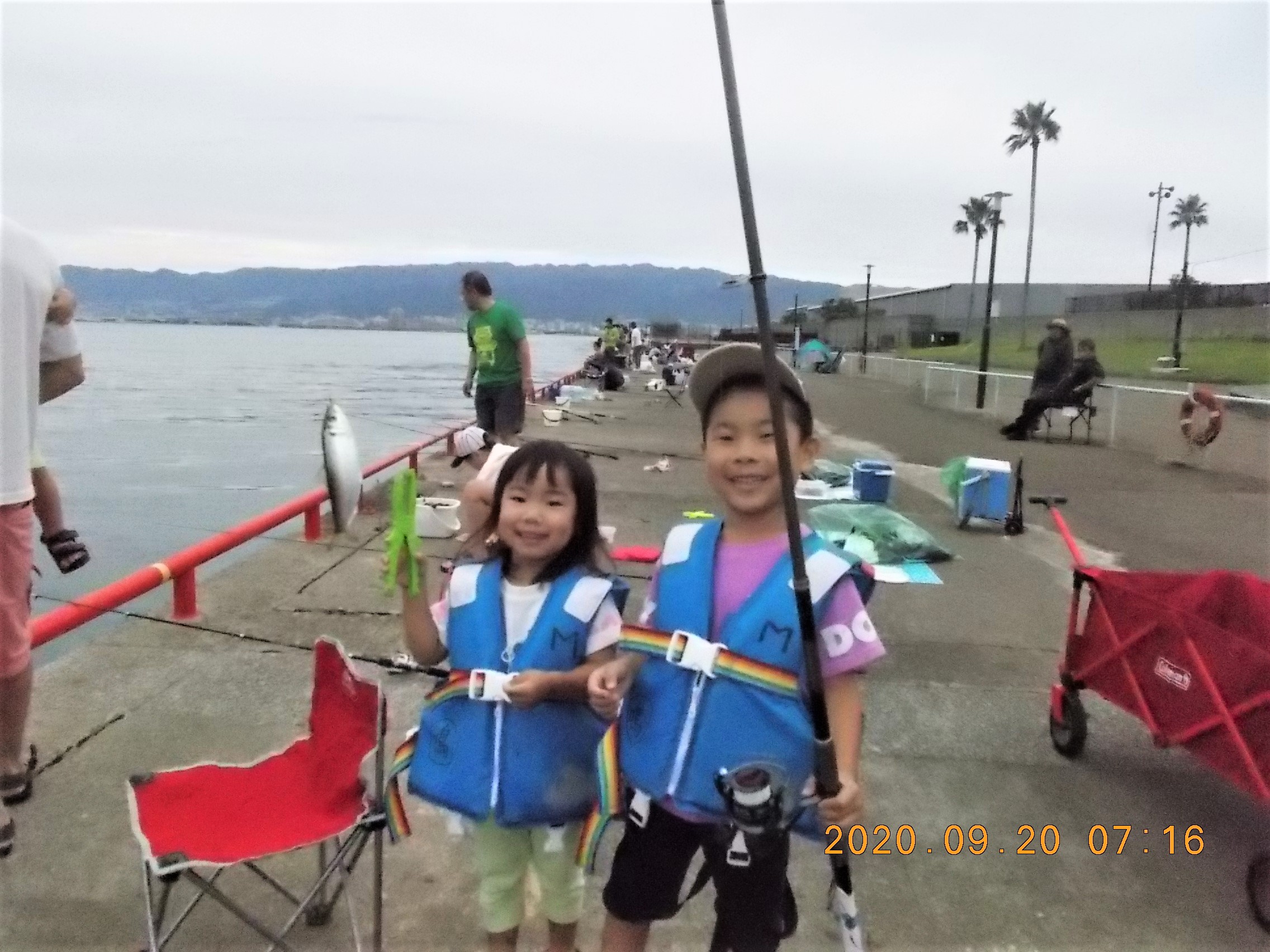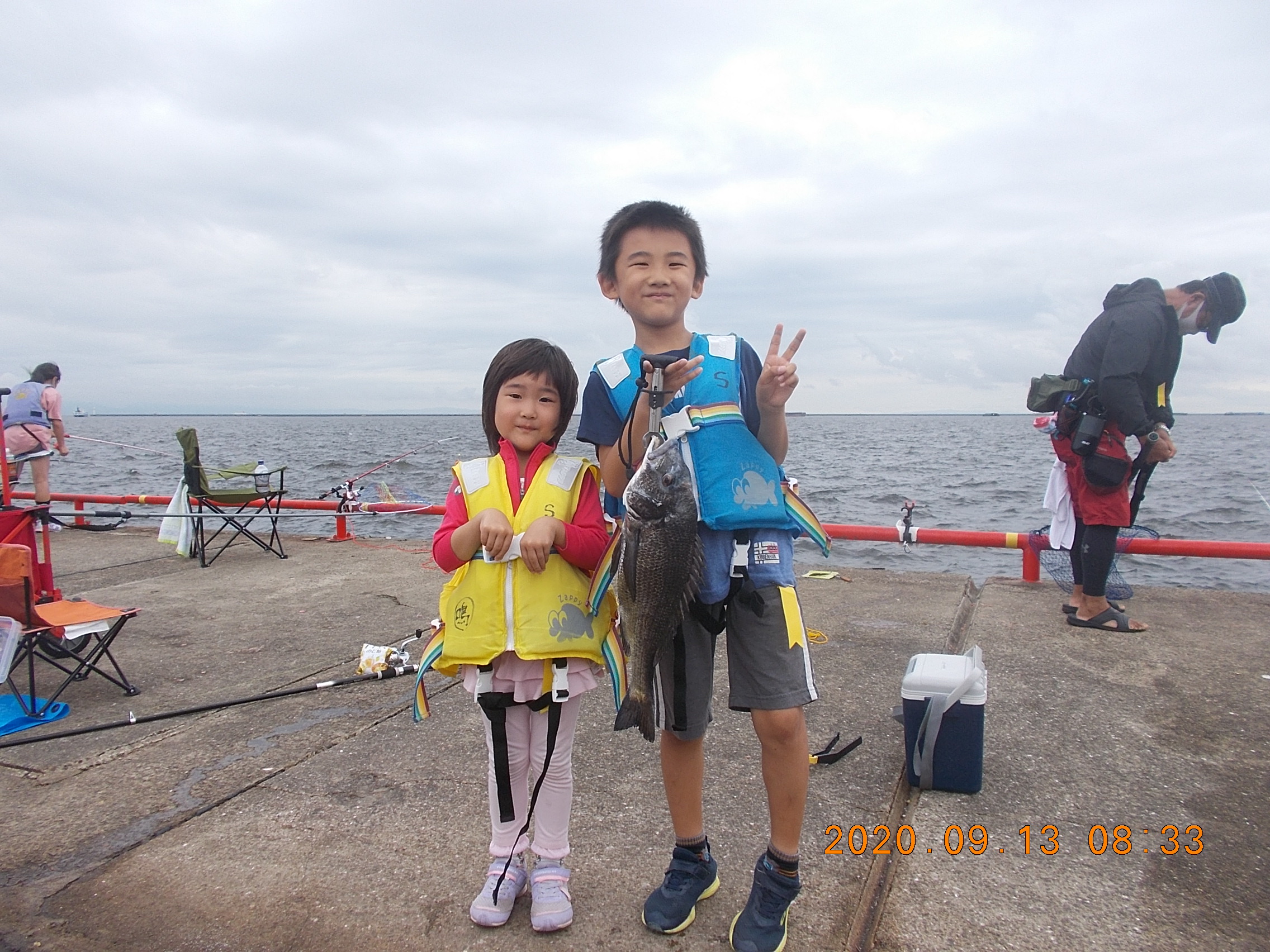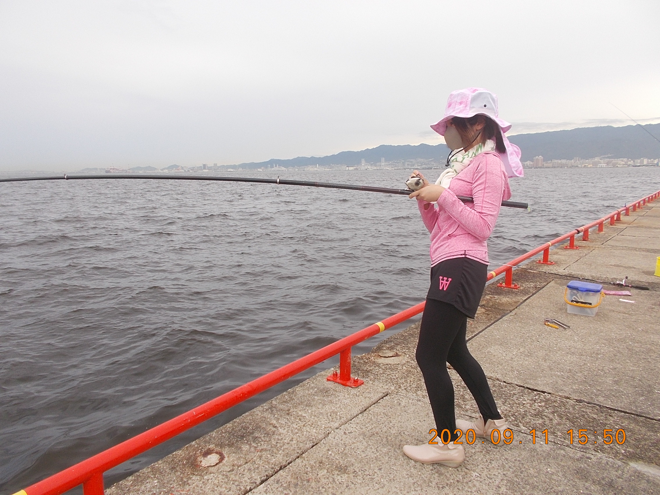 開場時どんよりとした空模様で、風が無く蒸し暑く感じます。相変わらずサバが釣れています。今でしたら、ルアー初心者の方にはもってこいで、遠投せずに近場でサバが釣れています。東側で紀州釣りの方がチヌを3匹と、エビ撒き釣りの方がハネ40cmを上げられました。