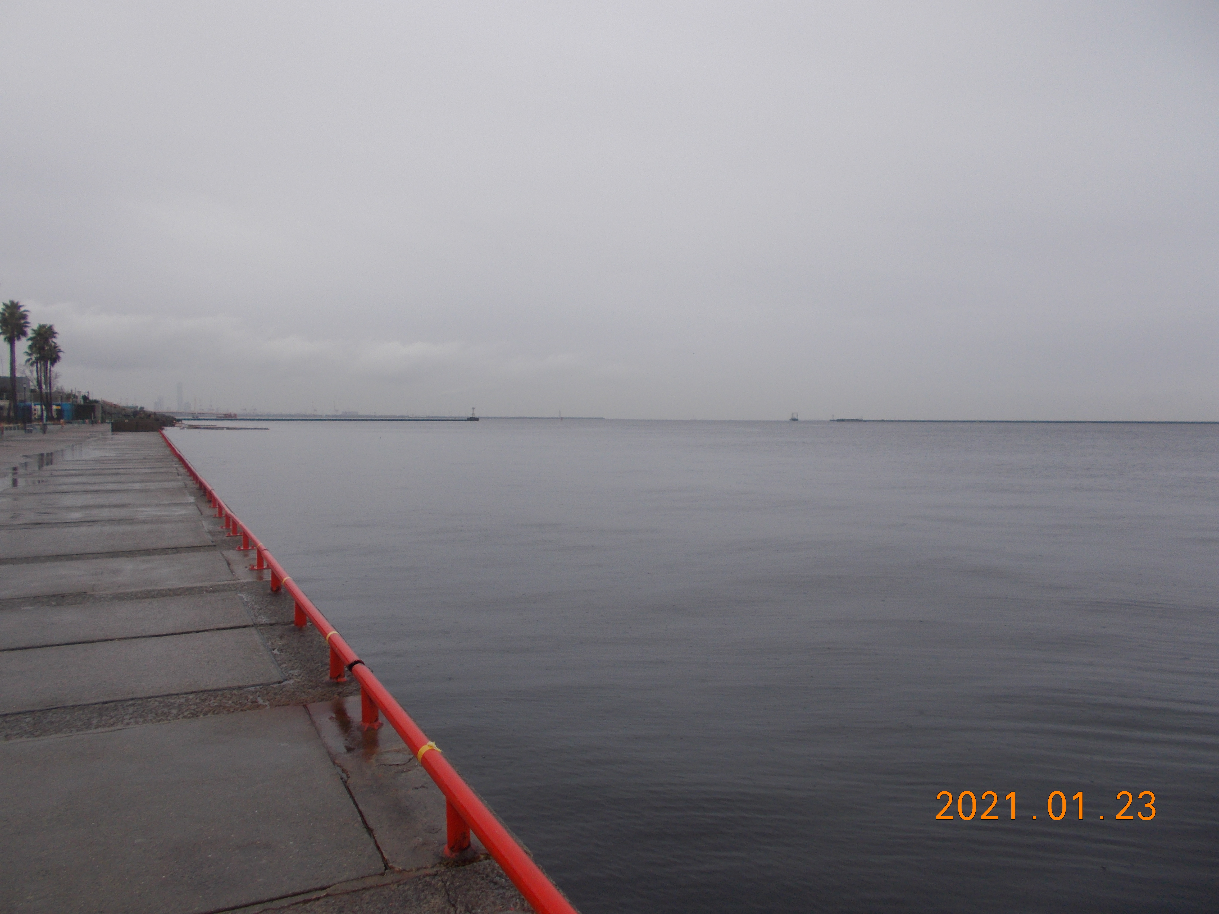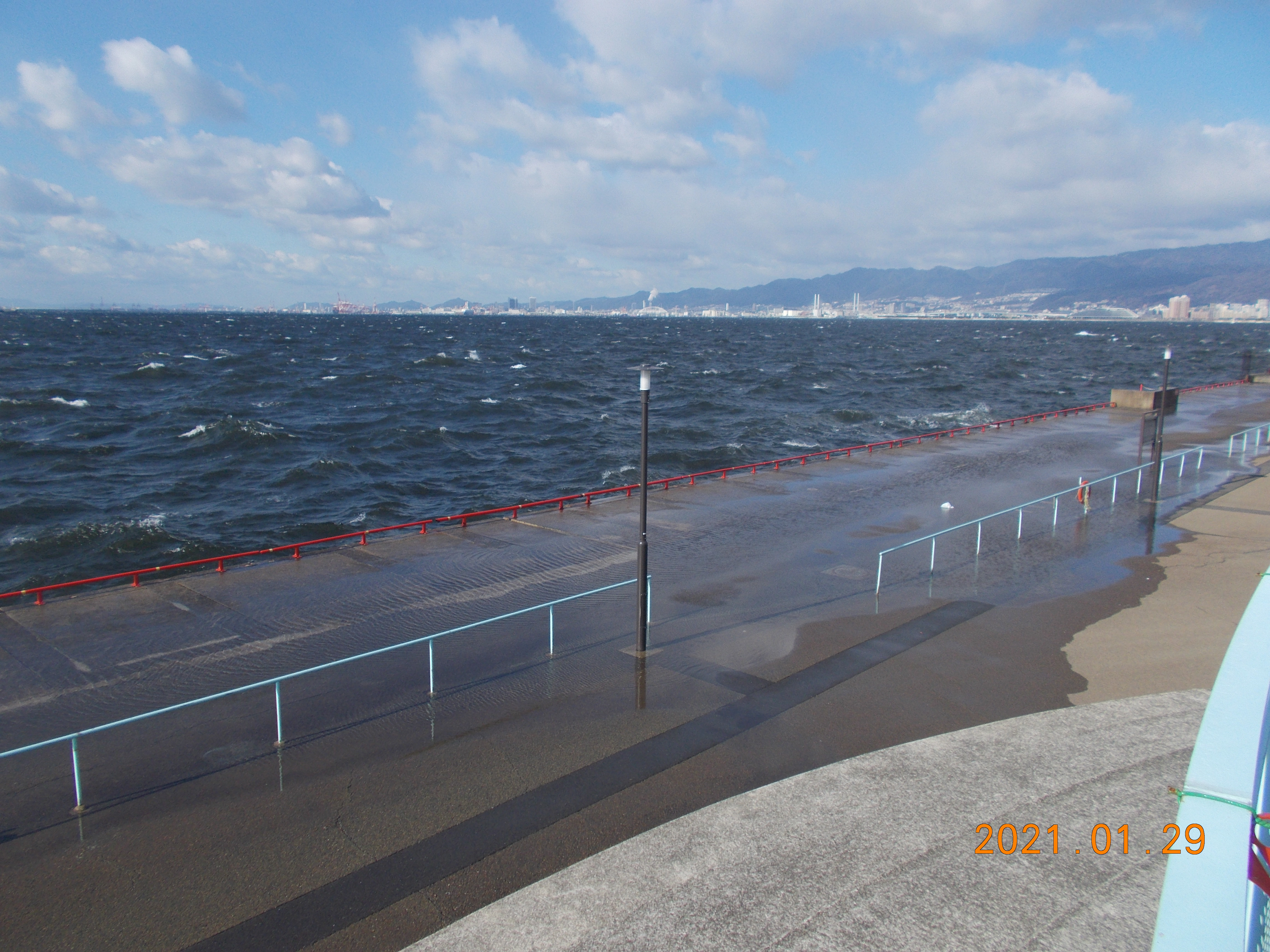 風が強よく、海面には白波がたっており、荒れ模様です。