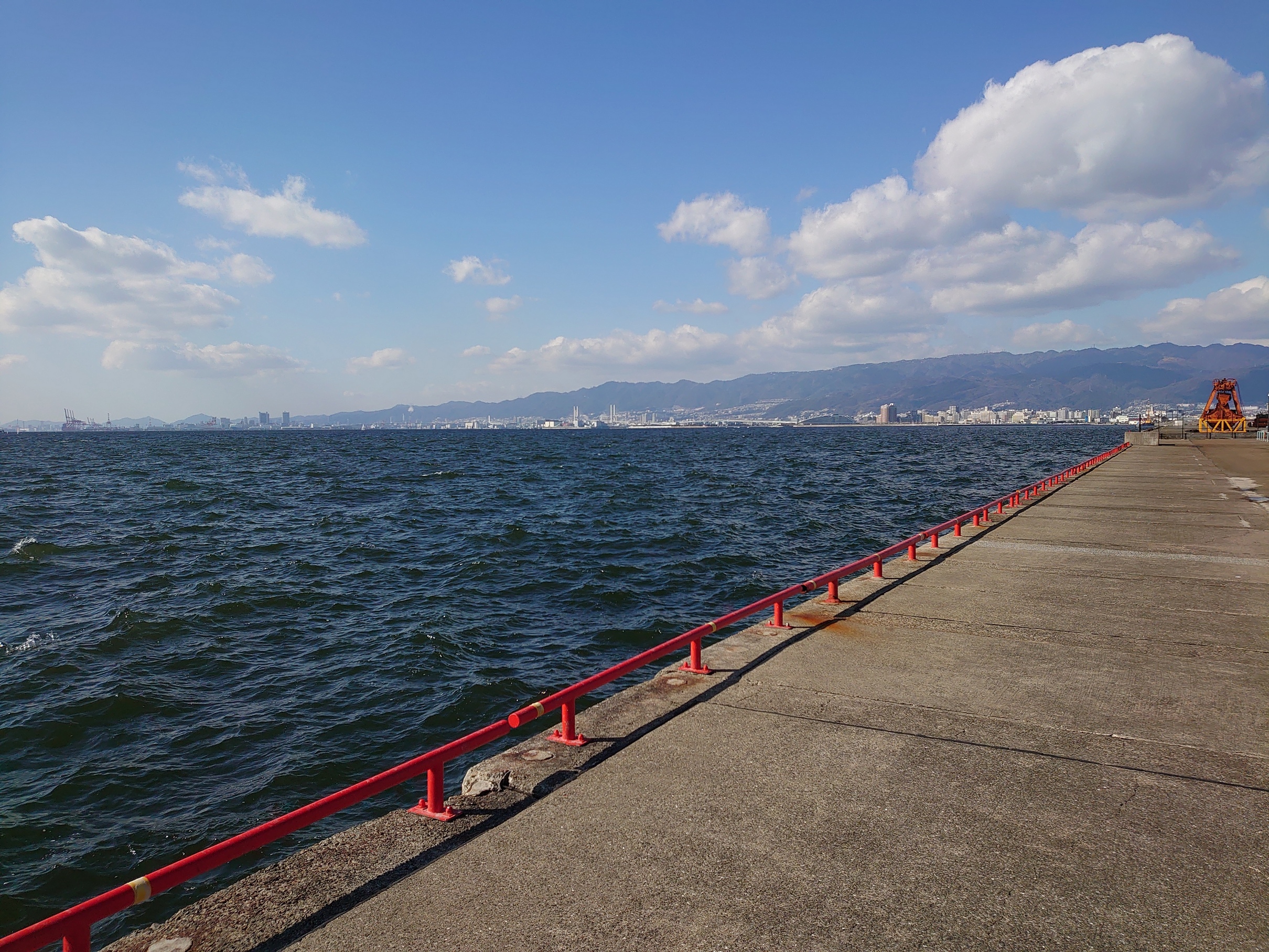 今日は予報通りスッキリと晴れ、ジッとしているとポカポカと温かく気持ちのいい鳴尾浜となっています。