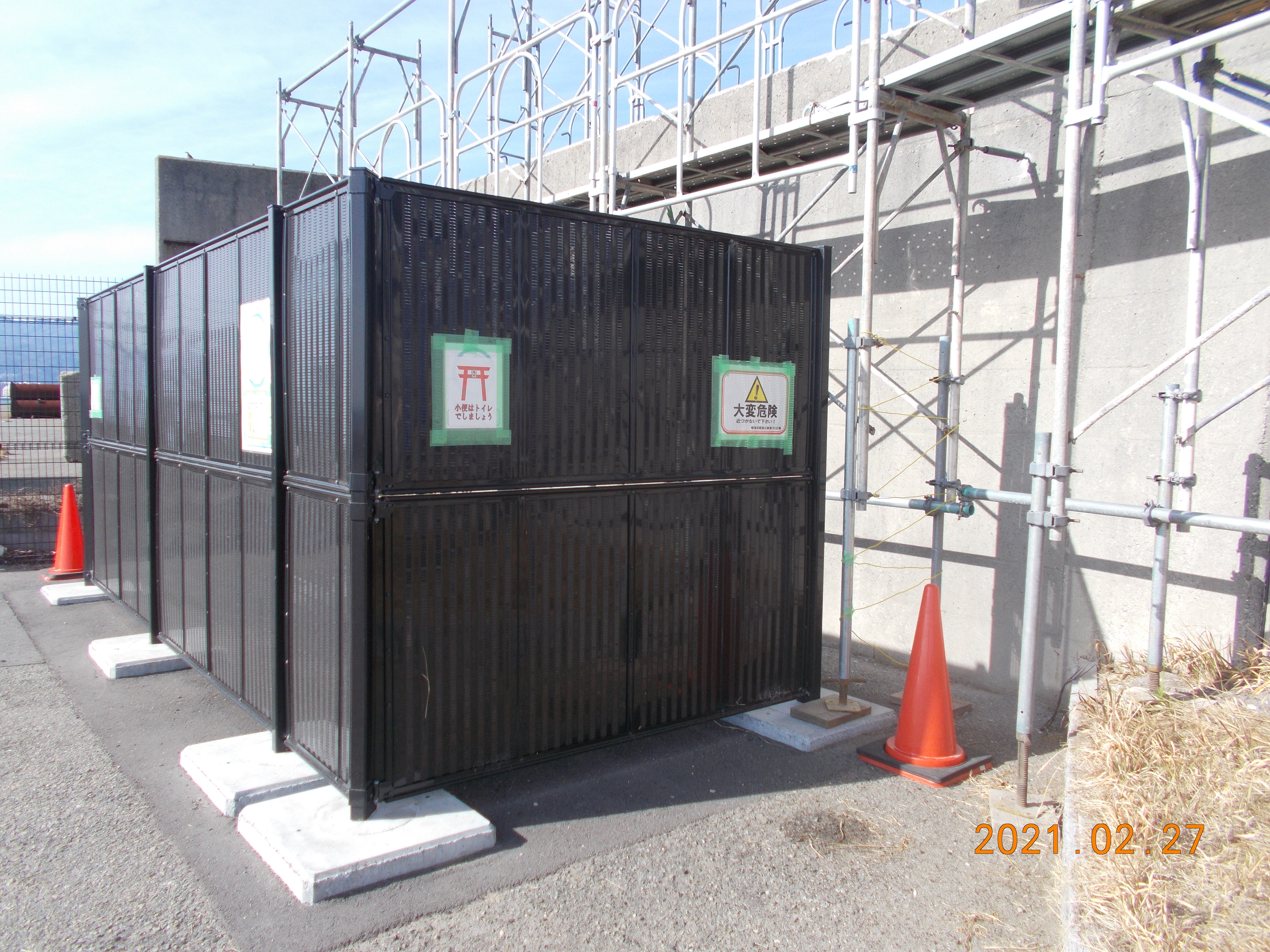 本日は、現在の入場門、通常では車両通用門の取付工事が行われているため、入場の際は警備員の案内に従って