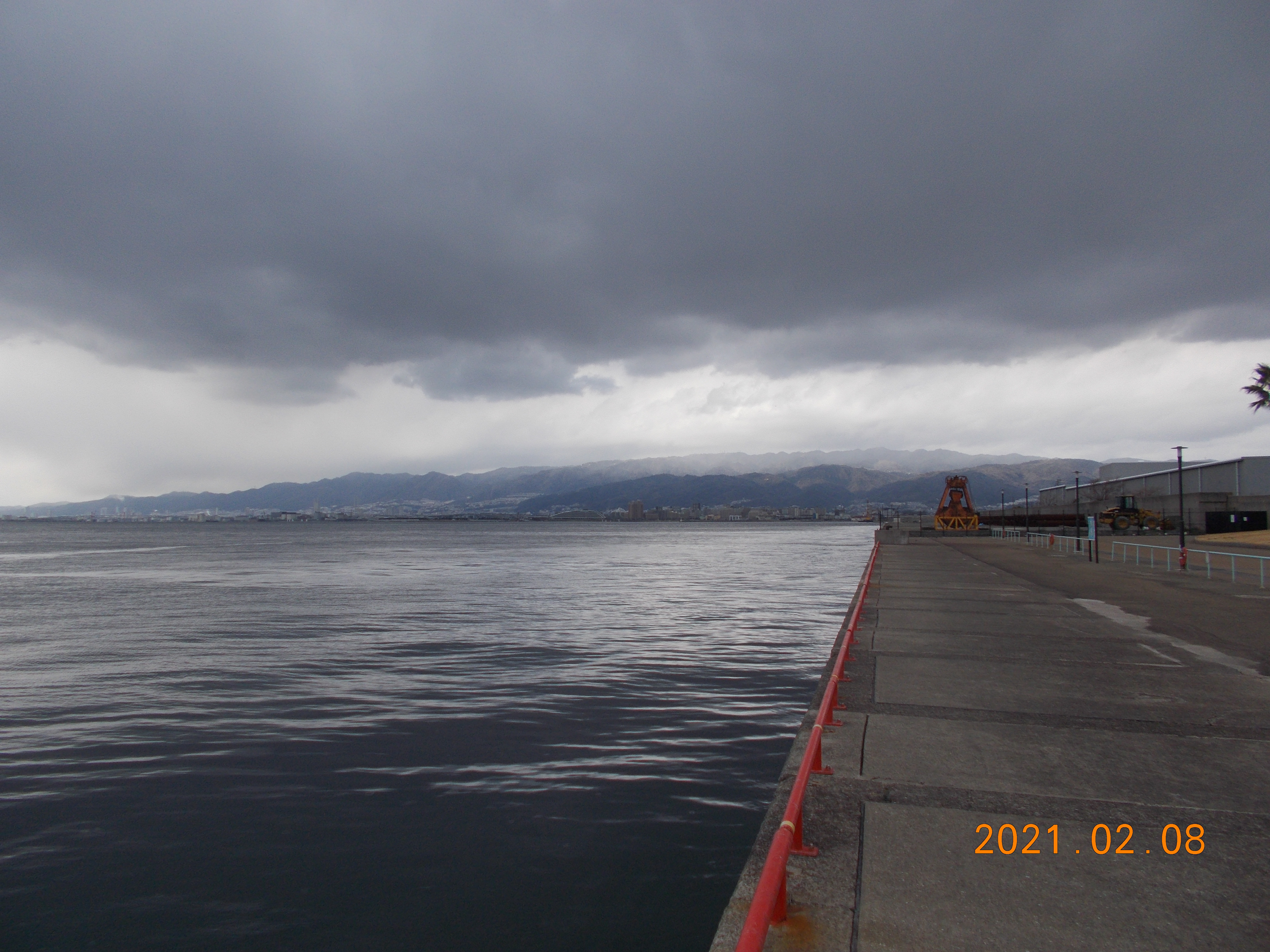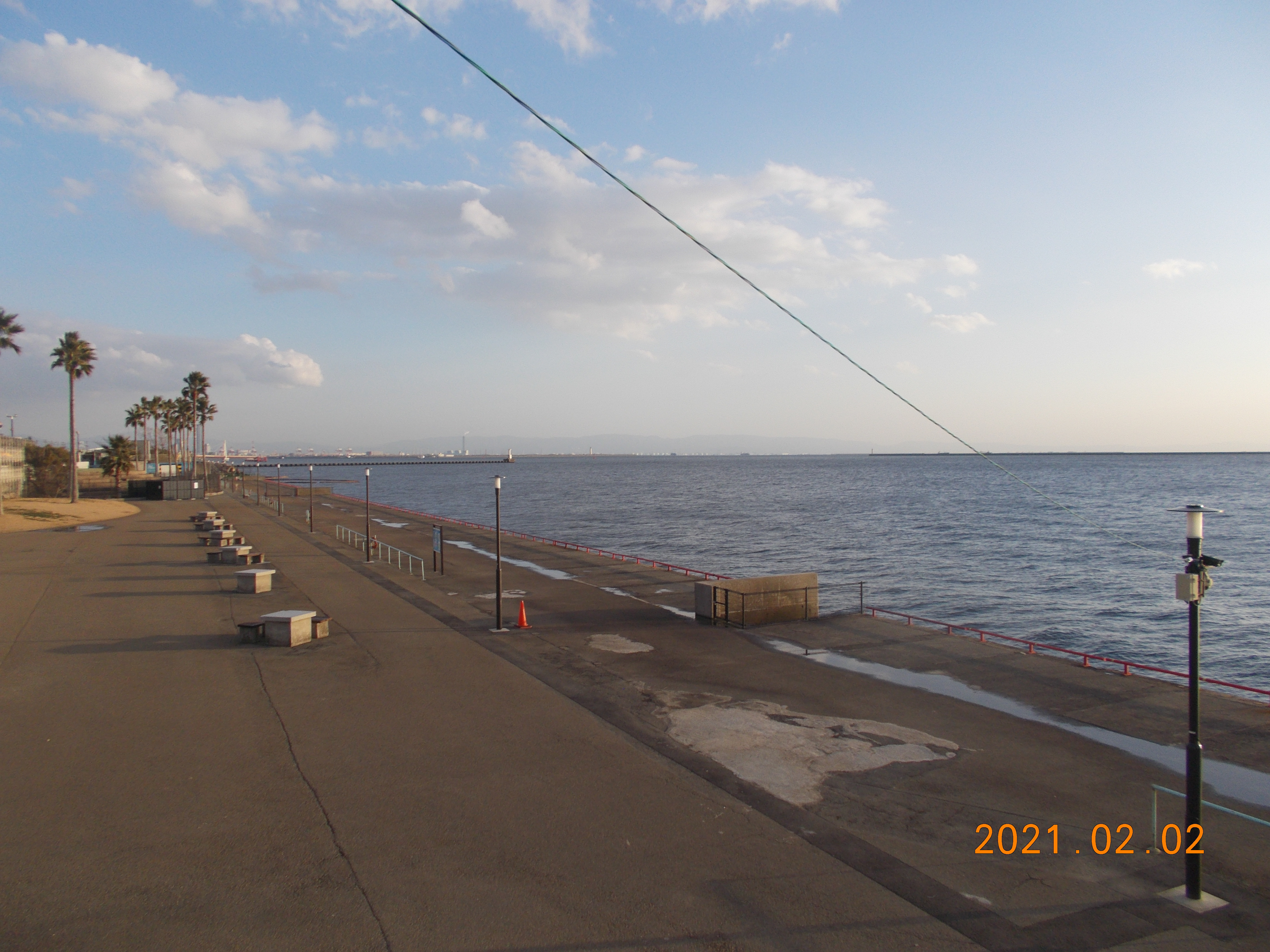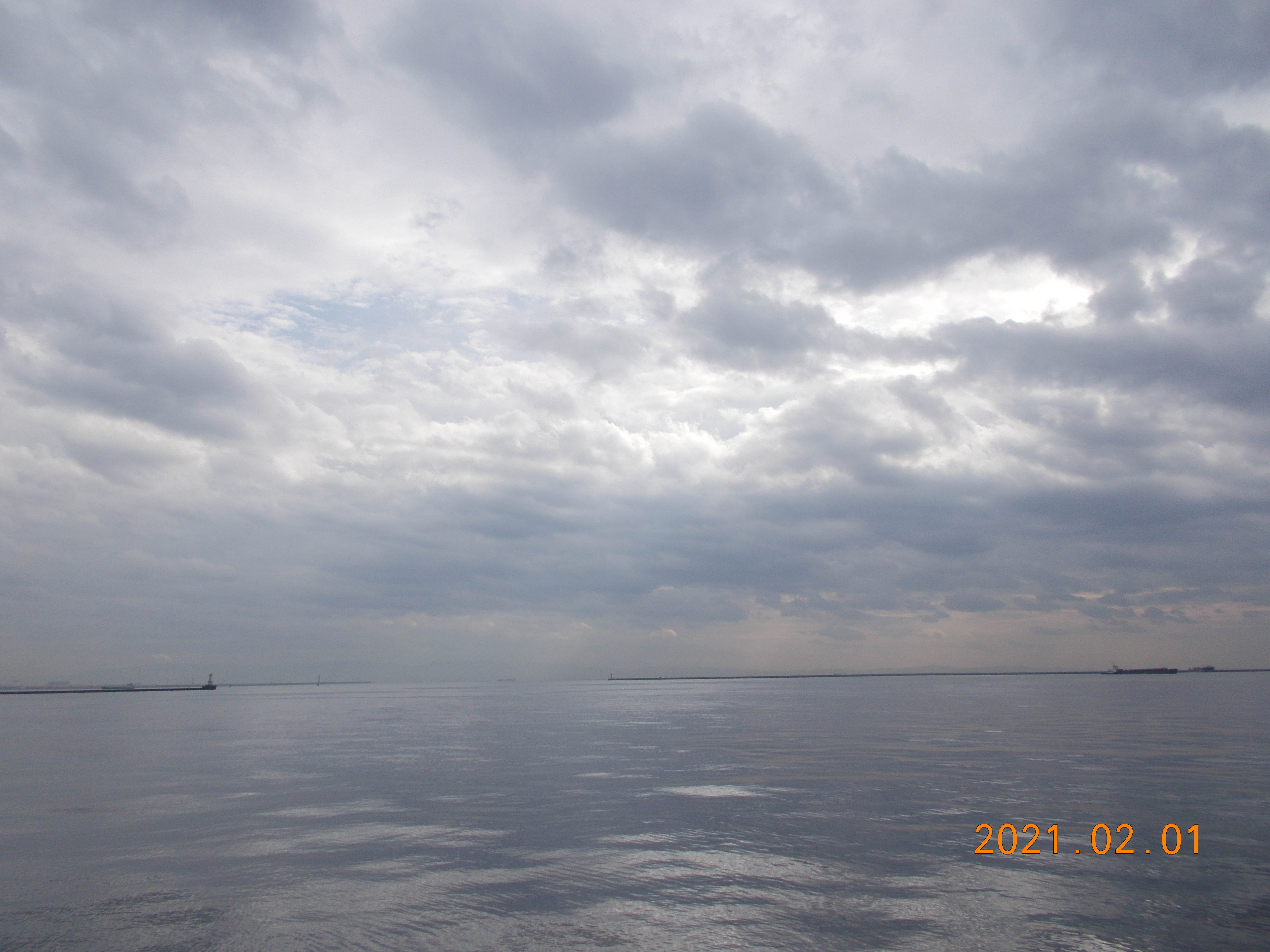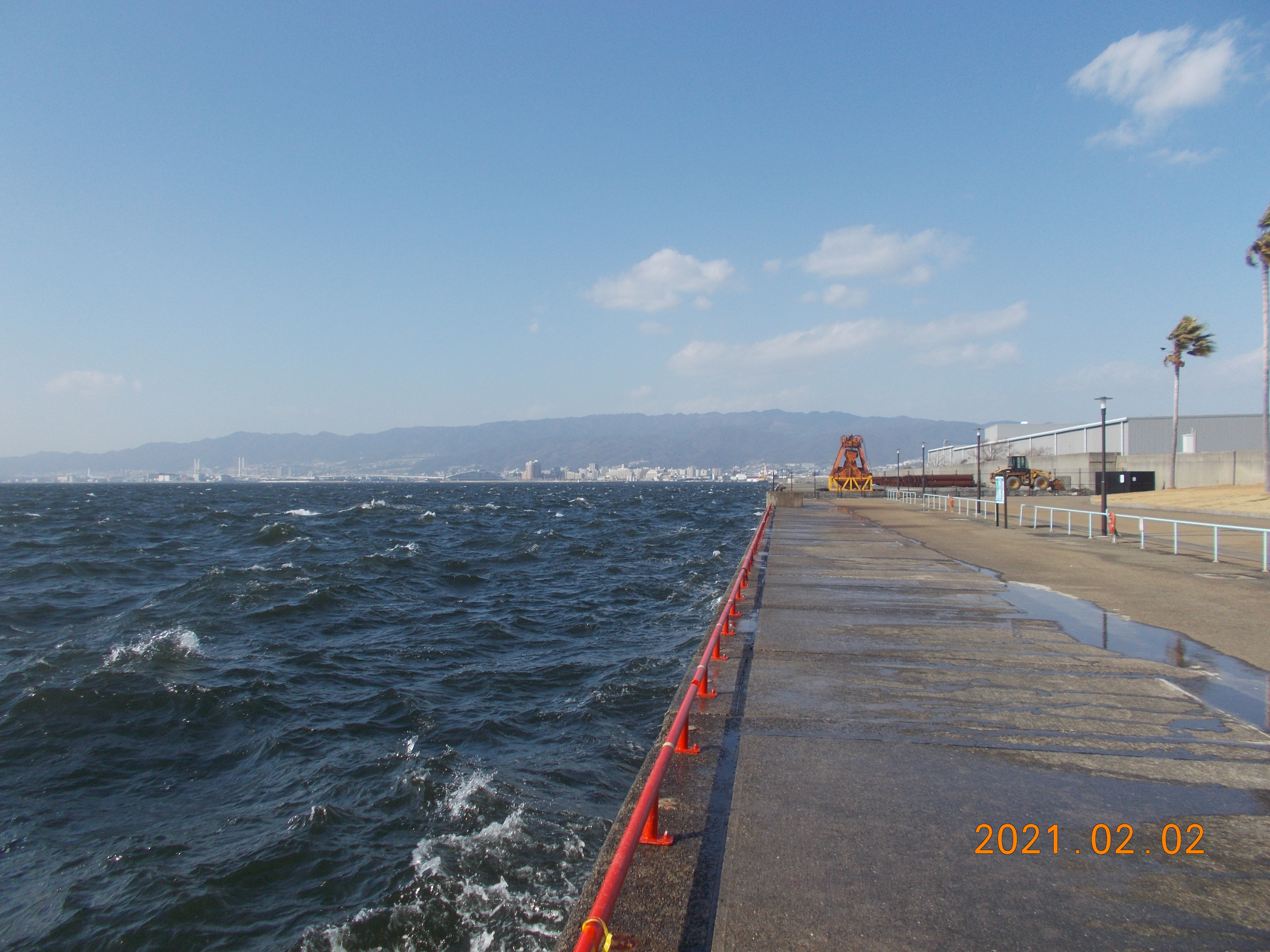 お昼前から真南(関空方面)の風が出てきました、約3m/s程。陽射しが暖かく2月上旬とは思えない鳴尾浜です。