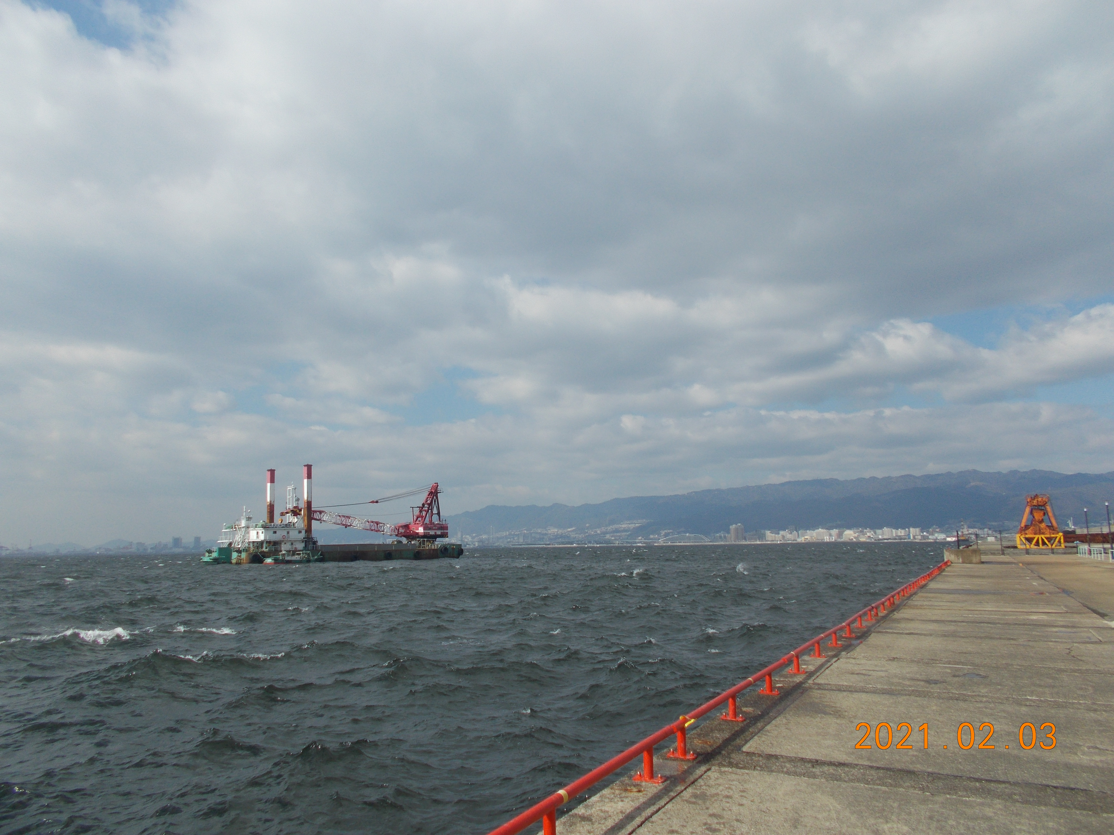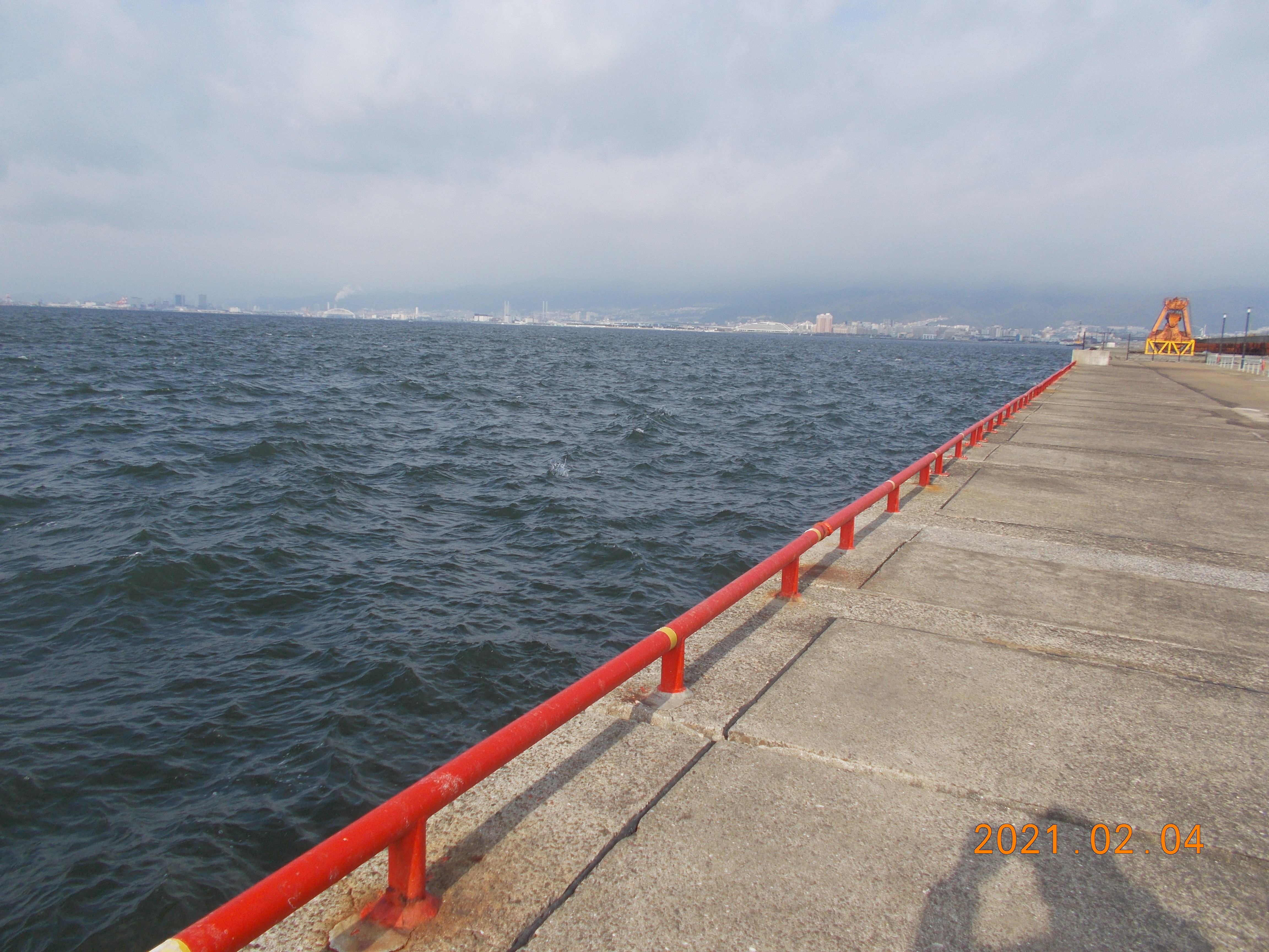 本日は9時頃から西風から北風に変わり、鳴尾浜にとっては後ろからの風になります。お昼には薄曇りになりましたが引き続き穏やかな鳴尾浜です。午前中、残念ながら釣果は出ずでした。