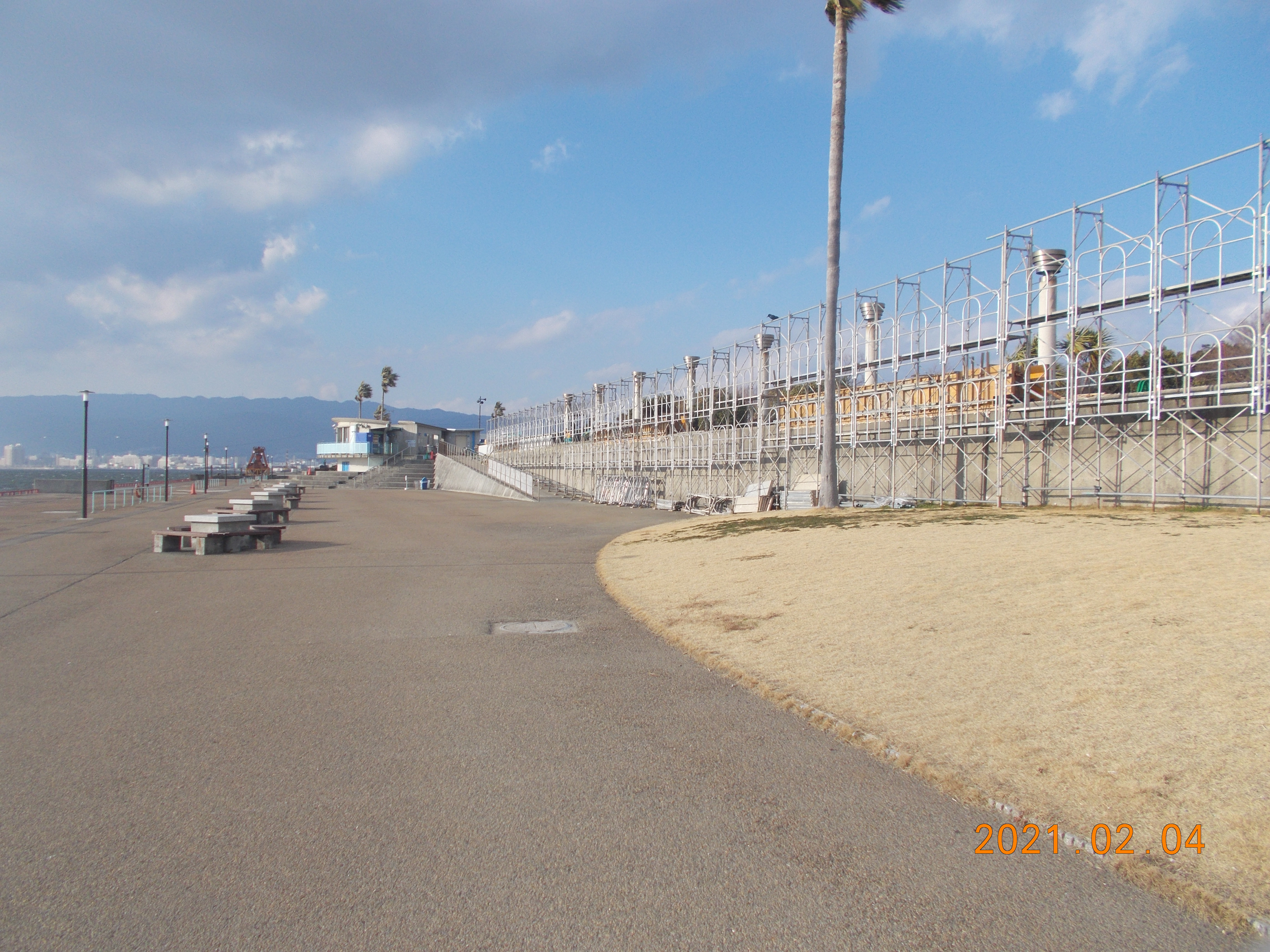 鳴尾浜護岸嵩上げ工事が着々と進み、本日は一時間程で門扉を撤去、早い! 新しい門扉と交換となり青からシックな焦茶色になるとの事です。少し工事が遅れているようですが皆さん頑張っていらっしゃいます、着実に進んでいますよ!