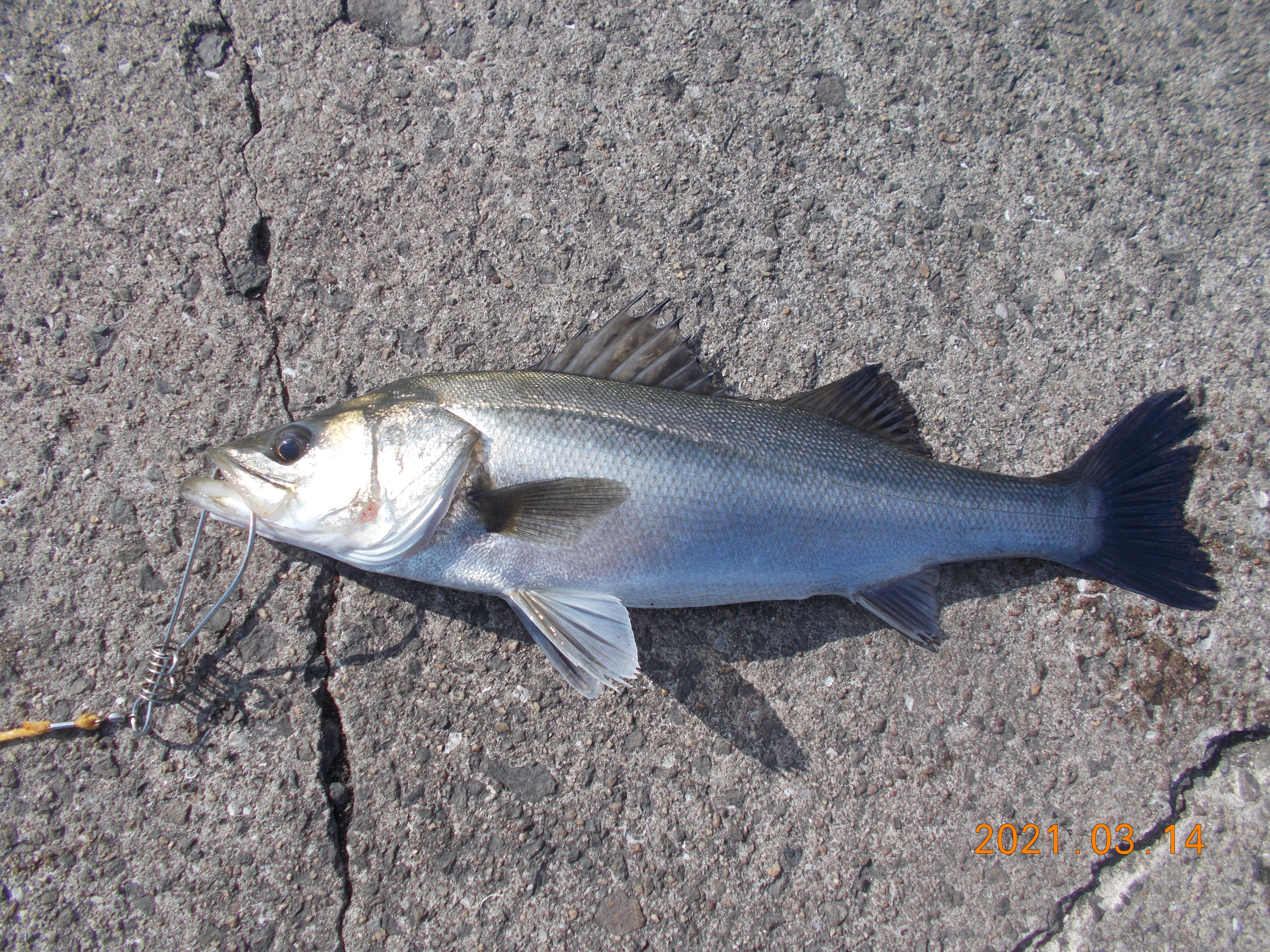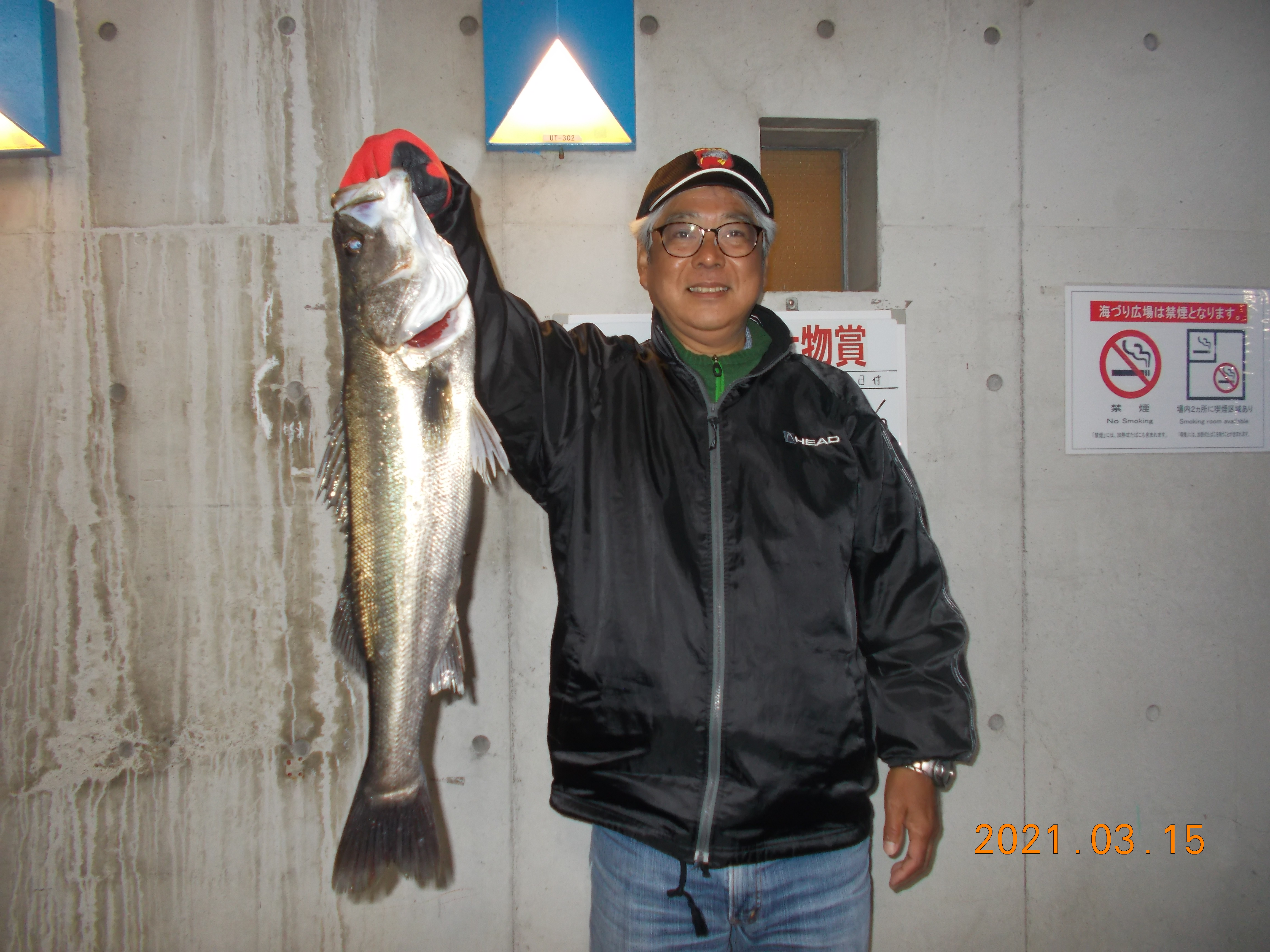 18時頃西側でスズキ64㎝(餌シラサ)1匹、セイゴ30㎝1匹釣れました。