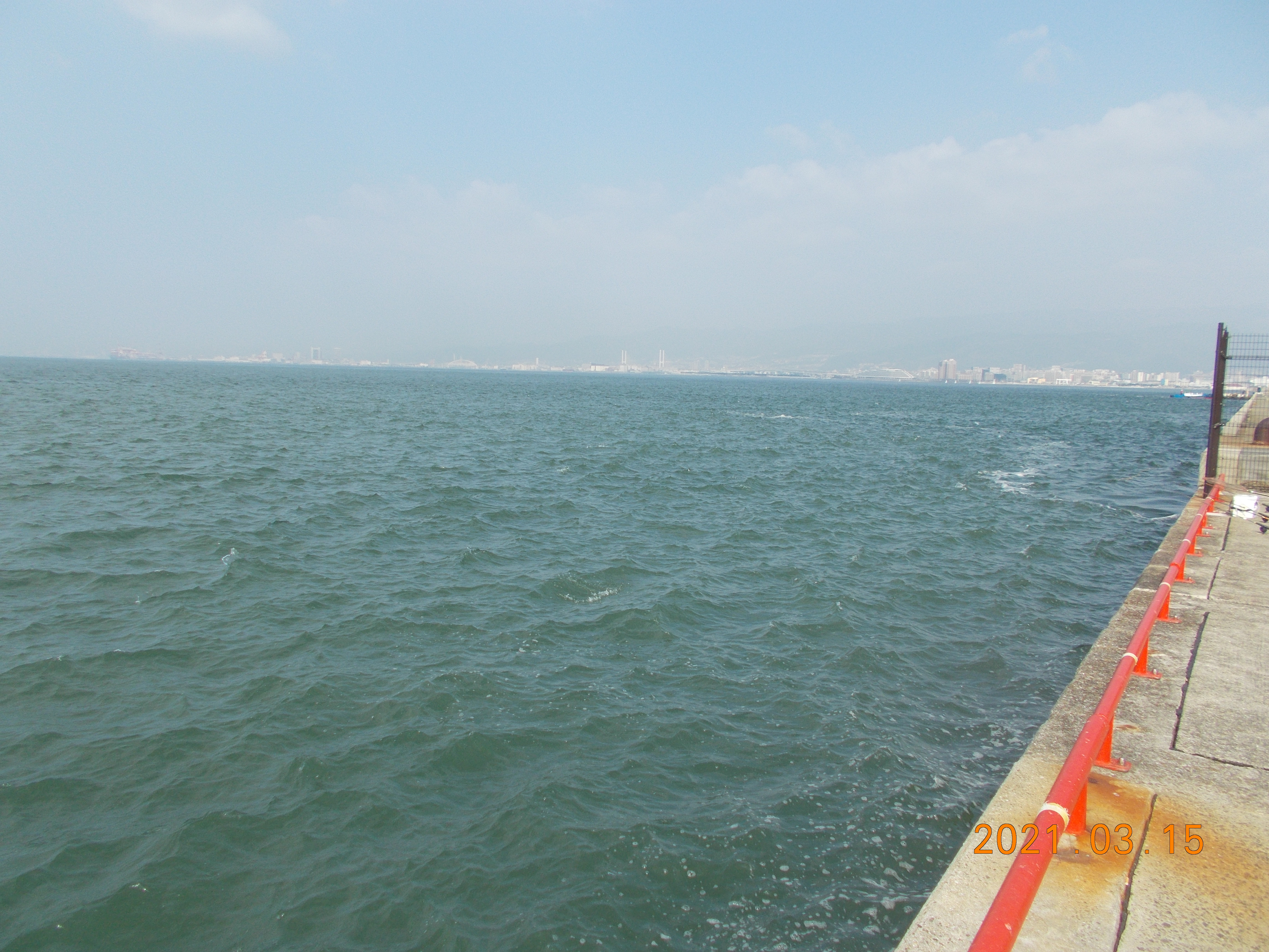 午後3時現在、西の風3-6m海上波0.5-1.0、天気快晴、気温15℃。風が強く釣り場に立つと意外に寒く感じます。