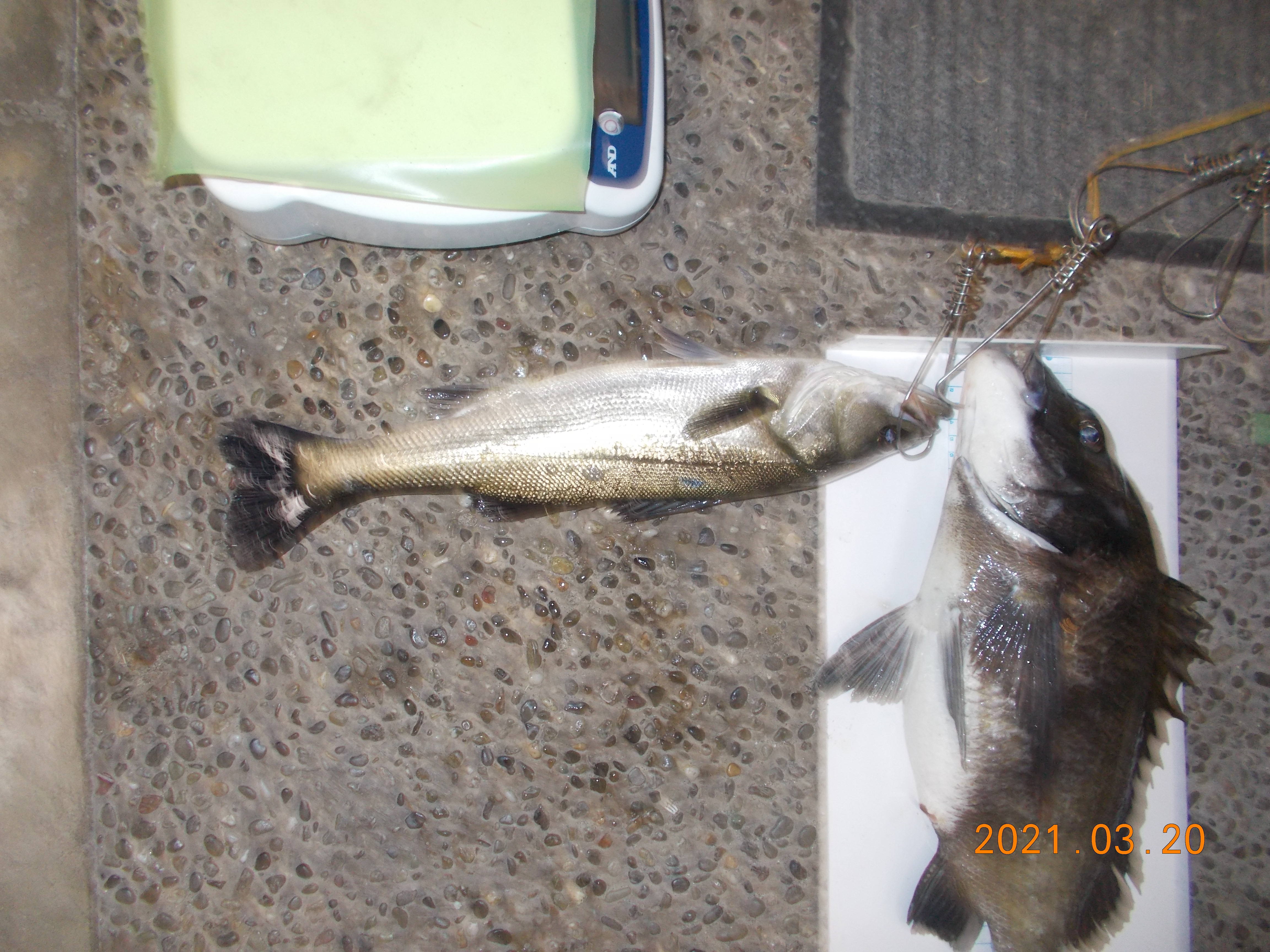 今日の釣果はサバ26㎝(ジグサビキ)2匹、スズキ1匹、セイゴ1匹です。
