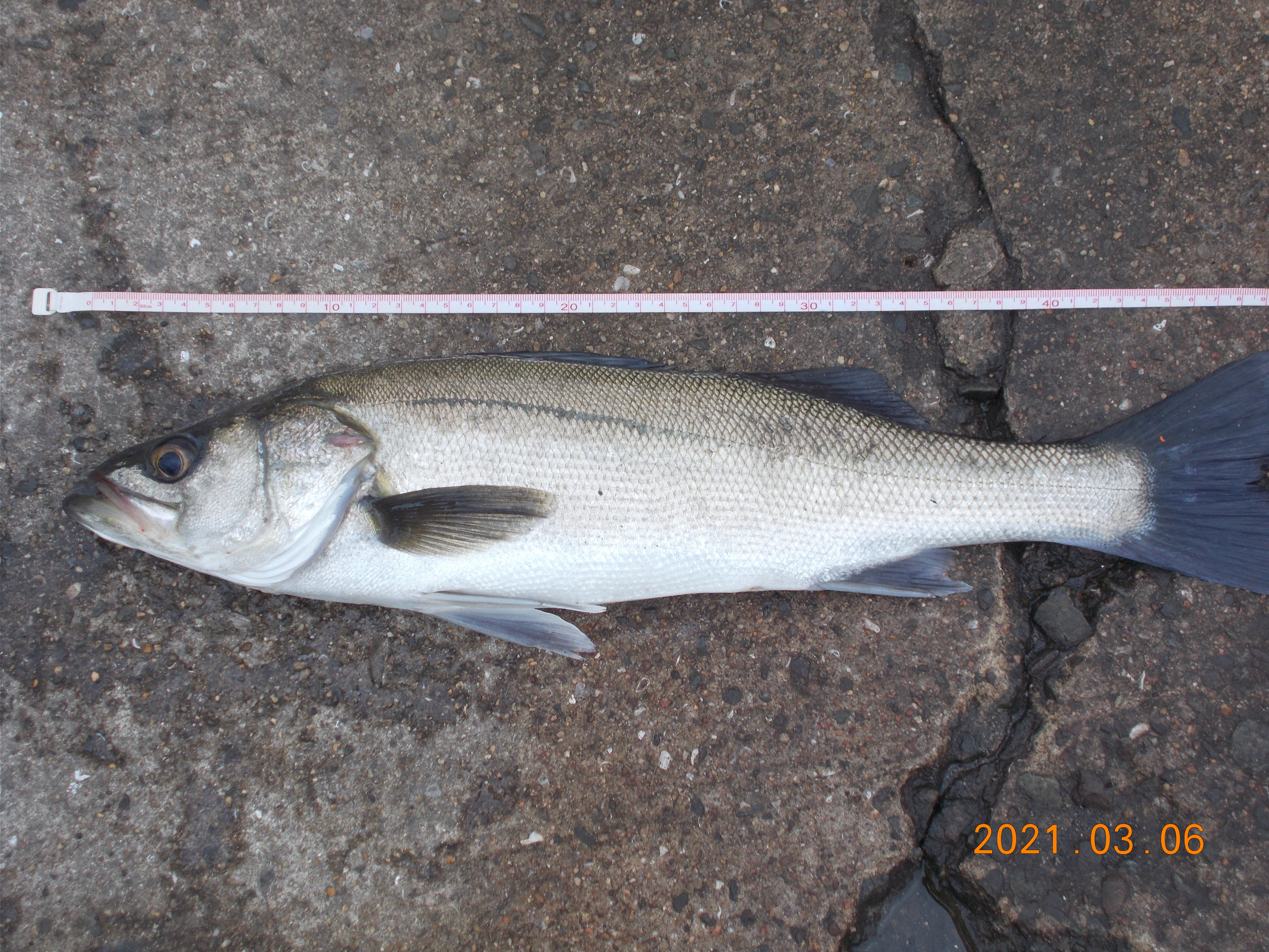 先ほど西端でハネ50㎝上げられました。餌シラサ。その後追加でセイゴ30cm台を2匹。