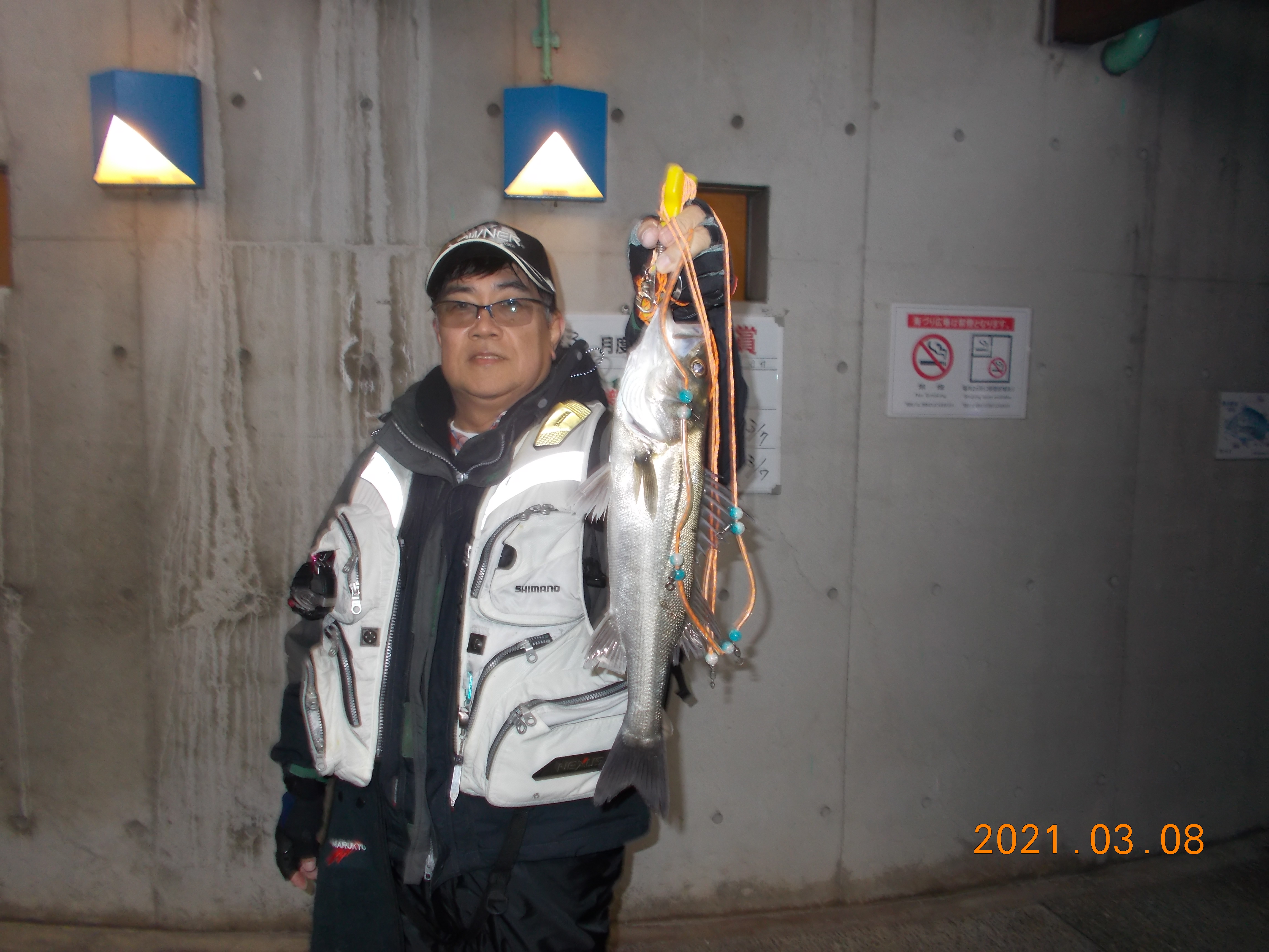 午後7時西端階段そばでスズキ69.0cm(2.39㎏)が上がりました。月間大物賞スズキの部エントリー。 -