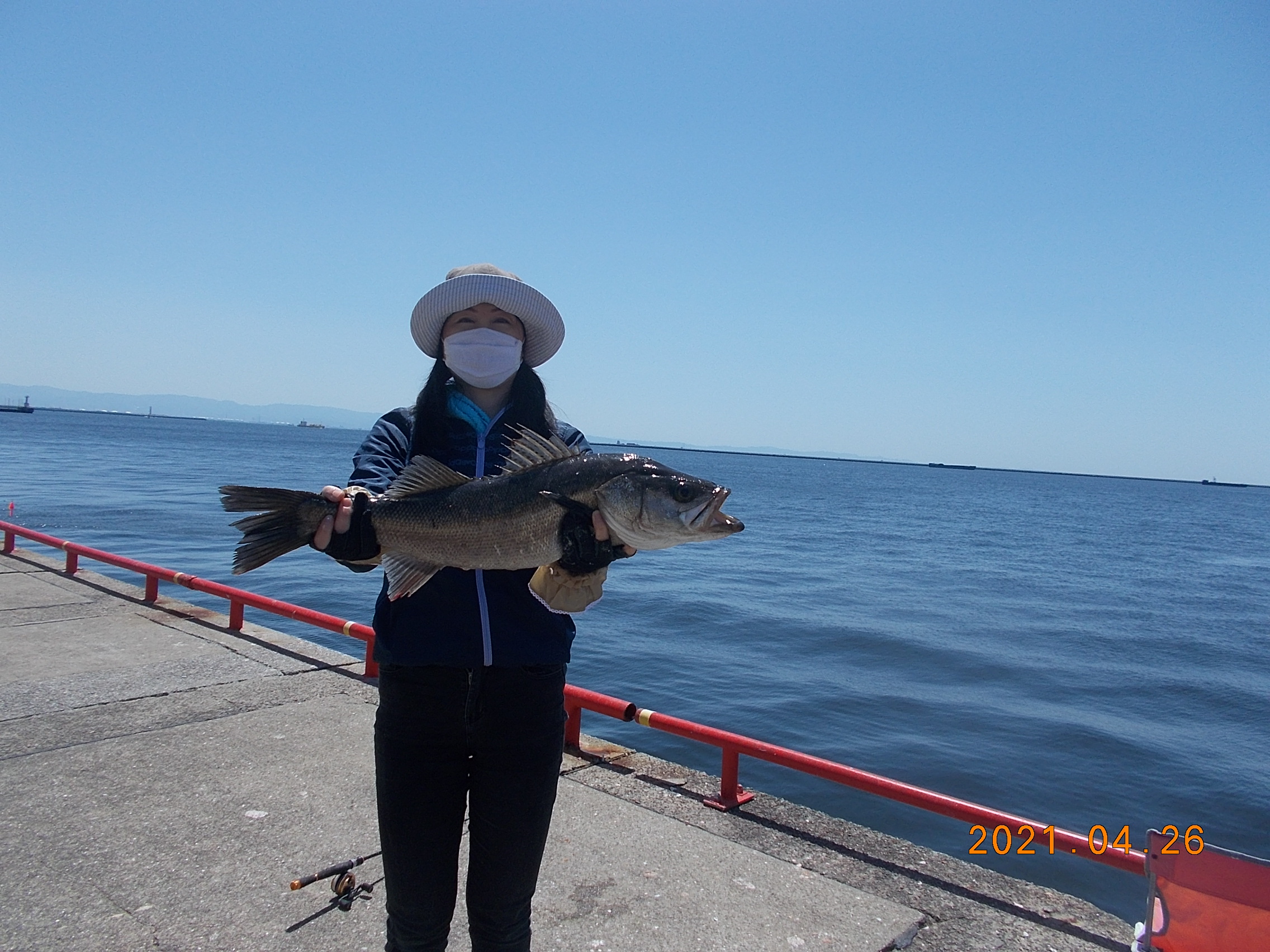 昨日とは違い、サビキ釣りは不発です。そんな中 西宮市の姫野様が70cmのスズキを上げました。