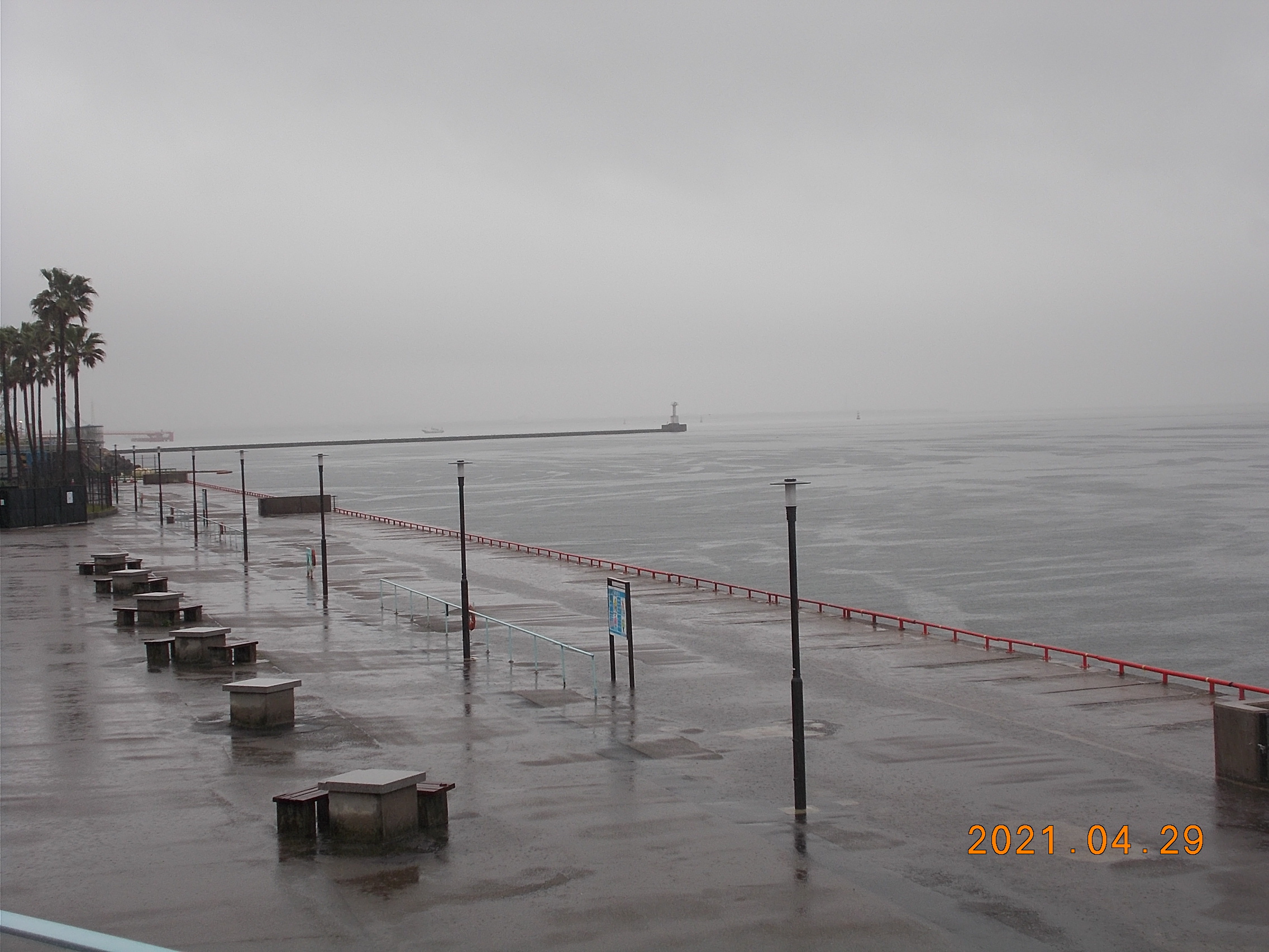 開園時、南西の風 2m。冷たい風で、少し寒く感じます。波もざわついています。