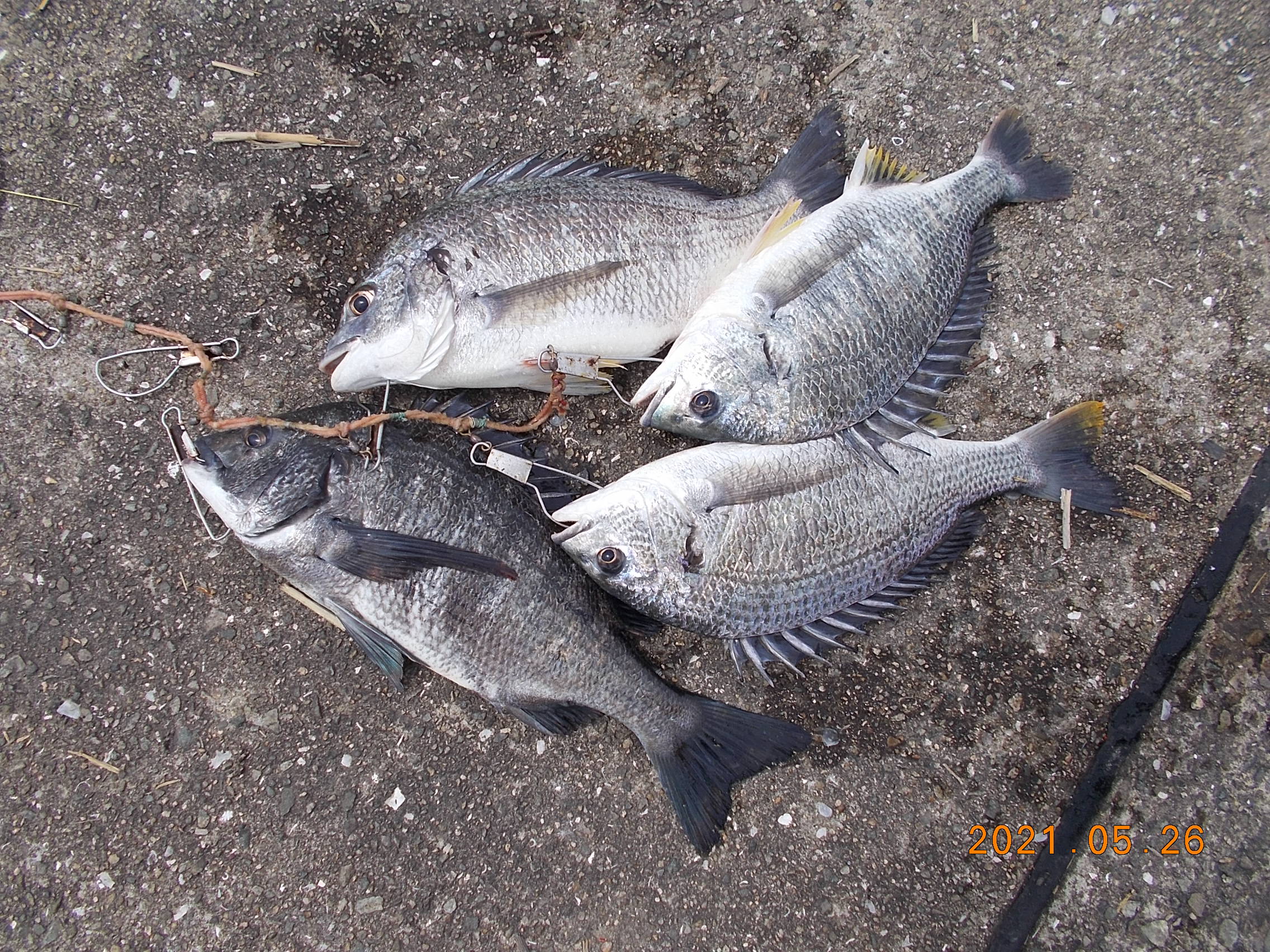 9時半頃からキビレ3匹、チヌ1匹釣れました。