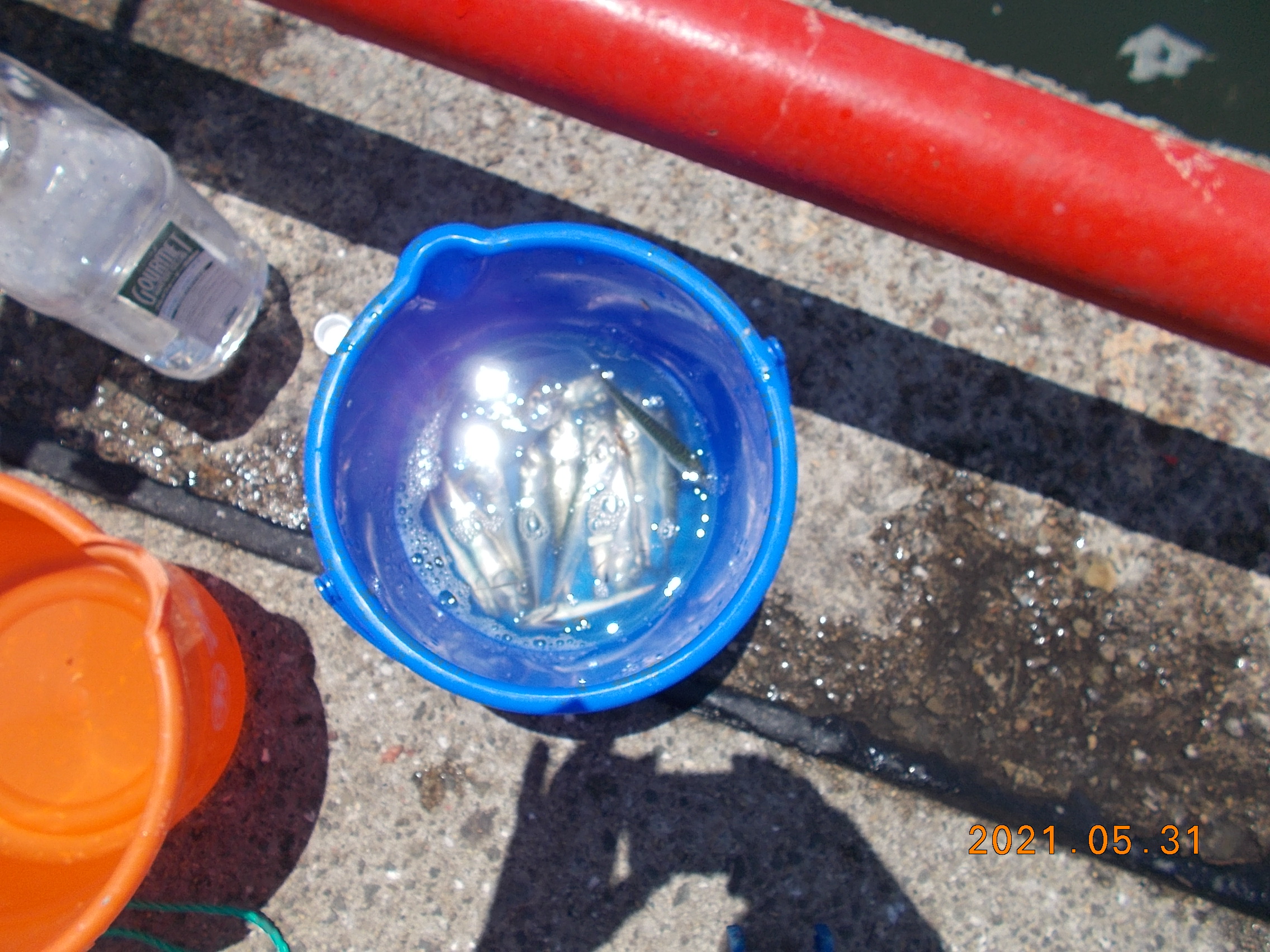 今日も17時頃からカタクチイワシの回遊があり2時間程で200匹程釣れました。