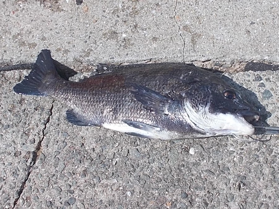 午前9時頃、東側の所で43cmのチヌが釣れました。しかし、それからはボラばっかりしか釣れないとの事です。
