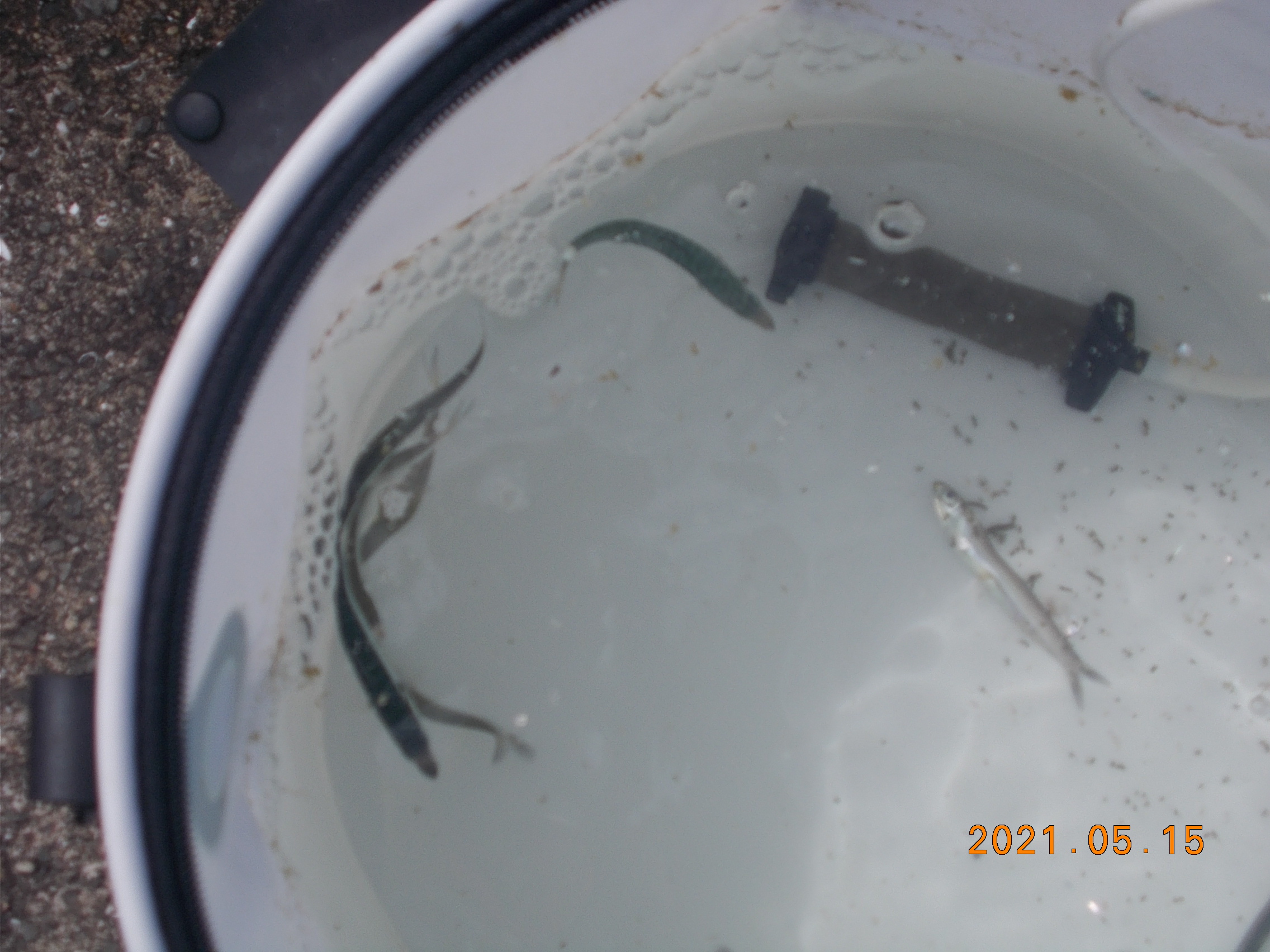 14時頃から雨が降りはじめて殆どのお客様がお帰りになられました、雨の中3名の方が頑張ってましたが17時過ぎに帰られました。釣果の方は午前中のキビレ餌(団子)40㎝、午後からギマ20㎝1匹、サッパ5匹、カタクチイワシ、20匹釣られてました。