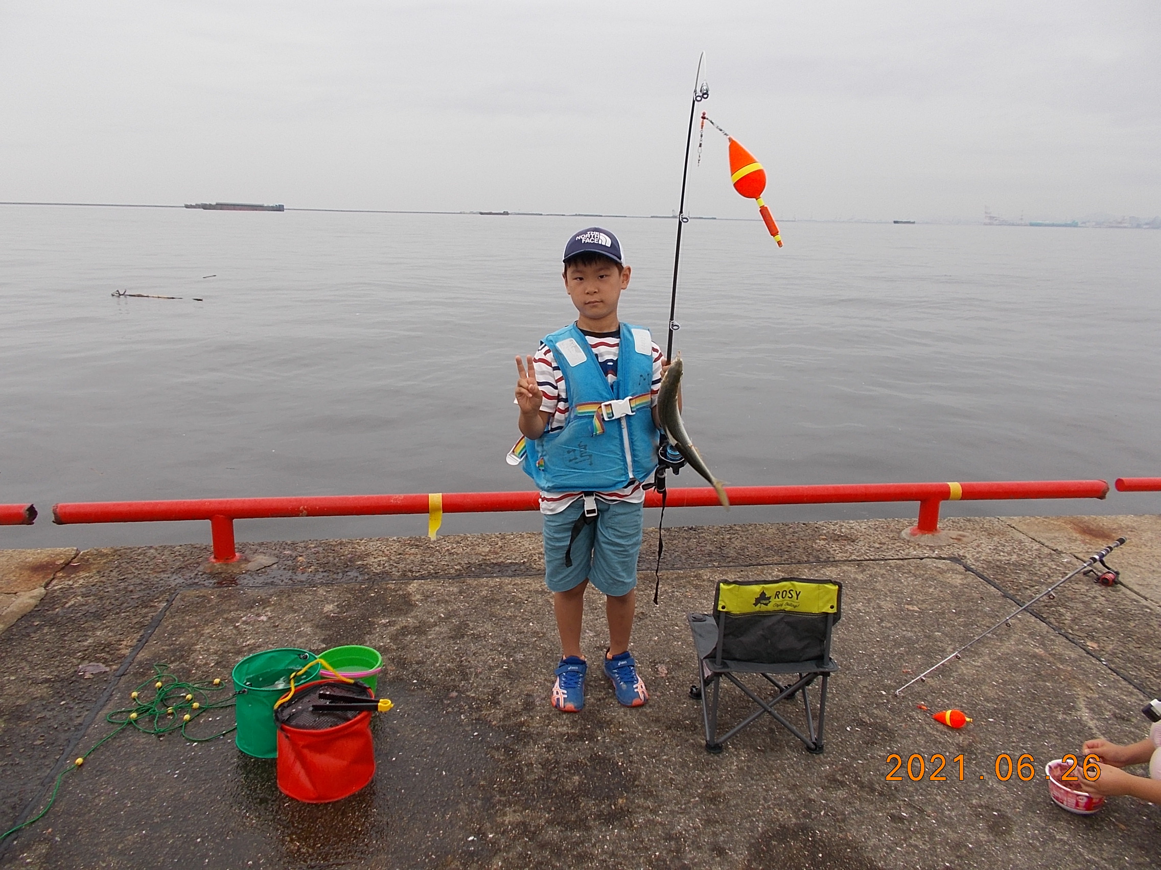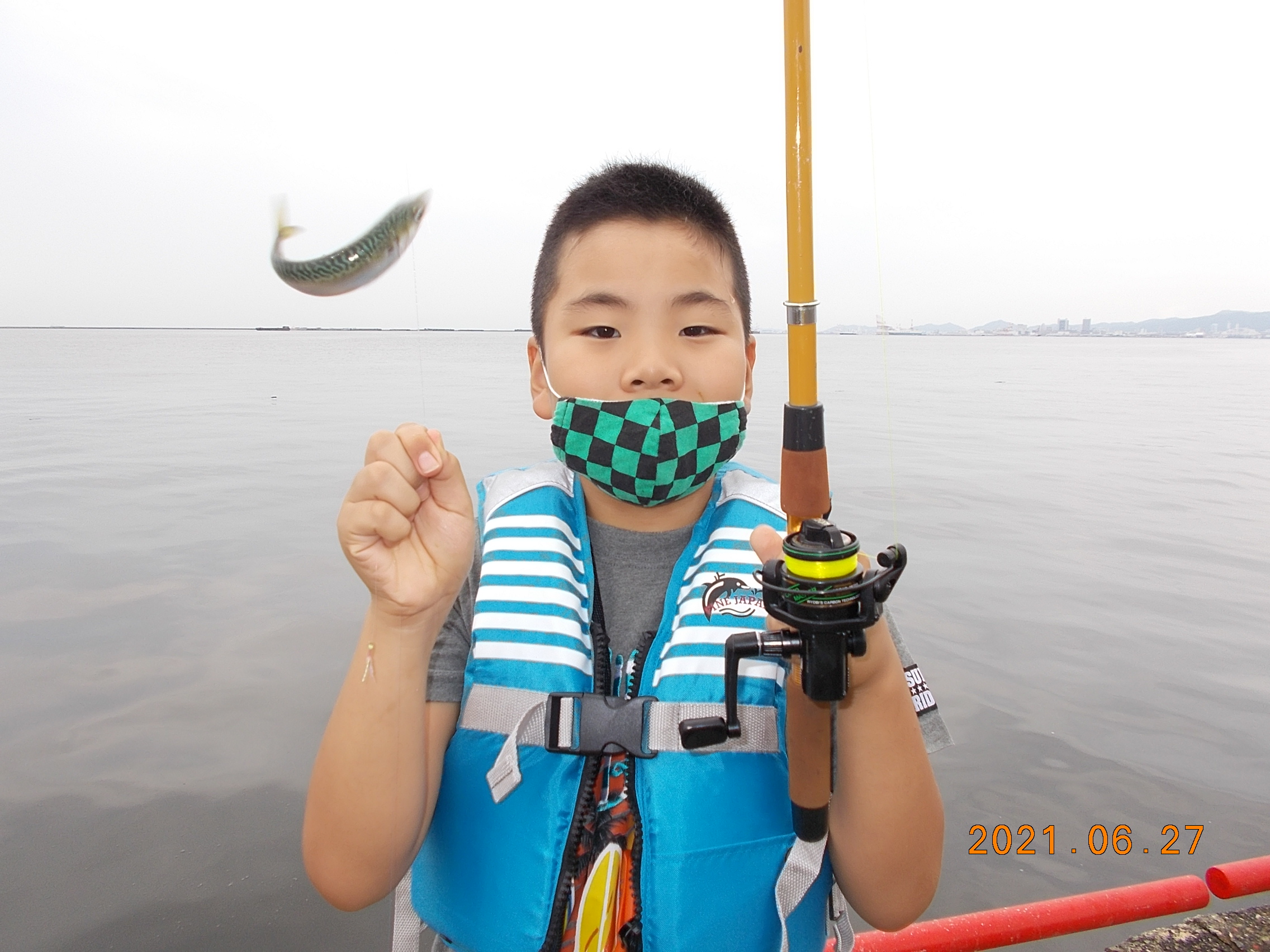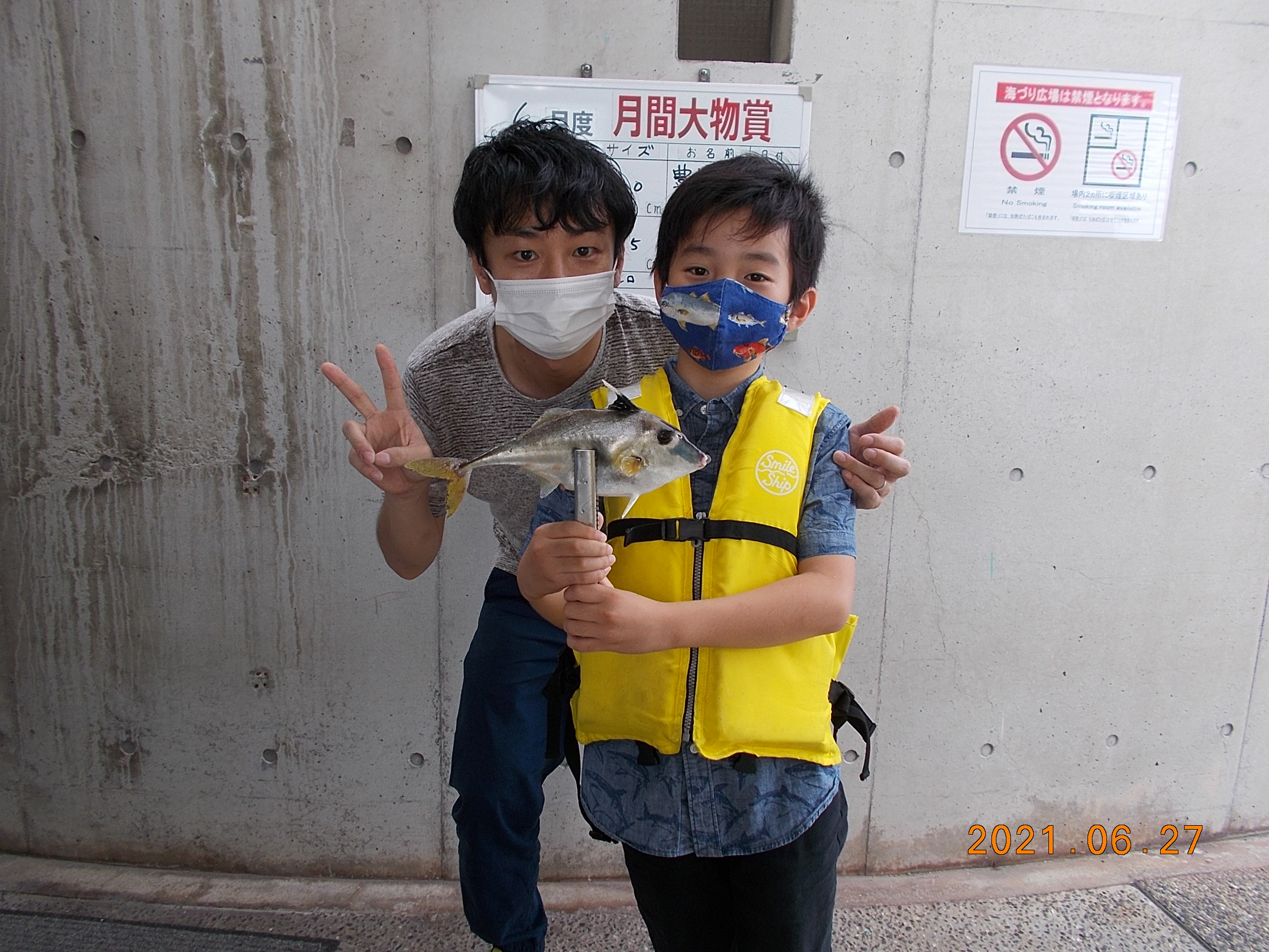 9時半現在、小サバは引き続き釣れています。一時程の釣果はありませんが止まる事無く釣れています。サビキ釣りで底狙いでコノシロが数匹釣れ、箕面市からお越しのご家族様が31㎝のコノシロを釣られ月間大物賞に登録致しました。