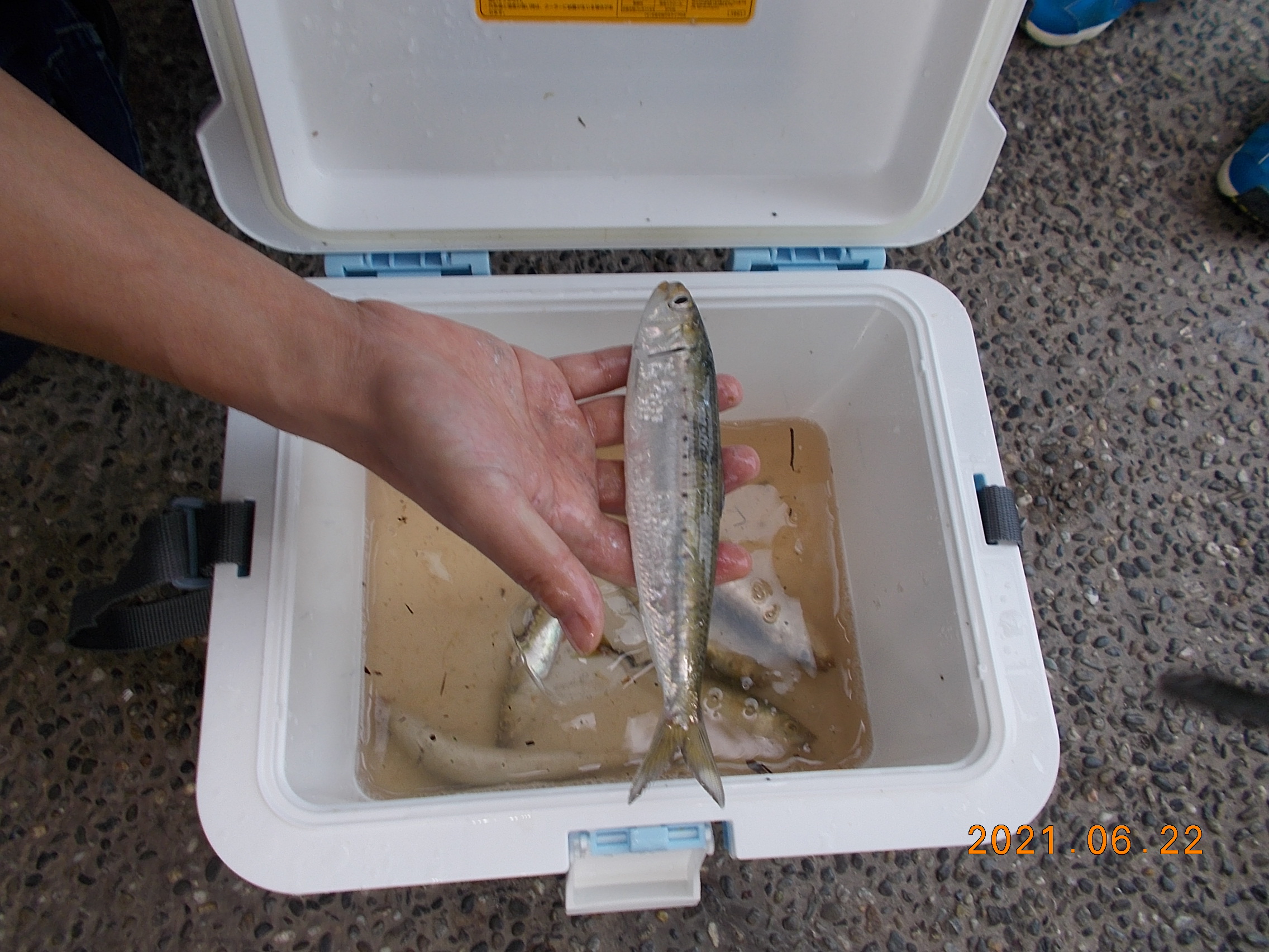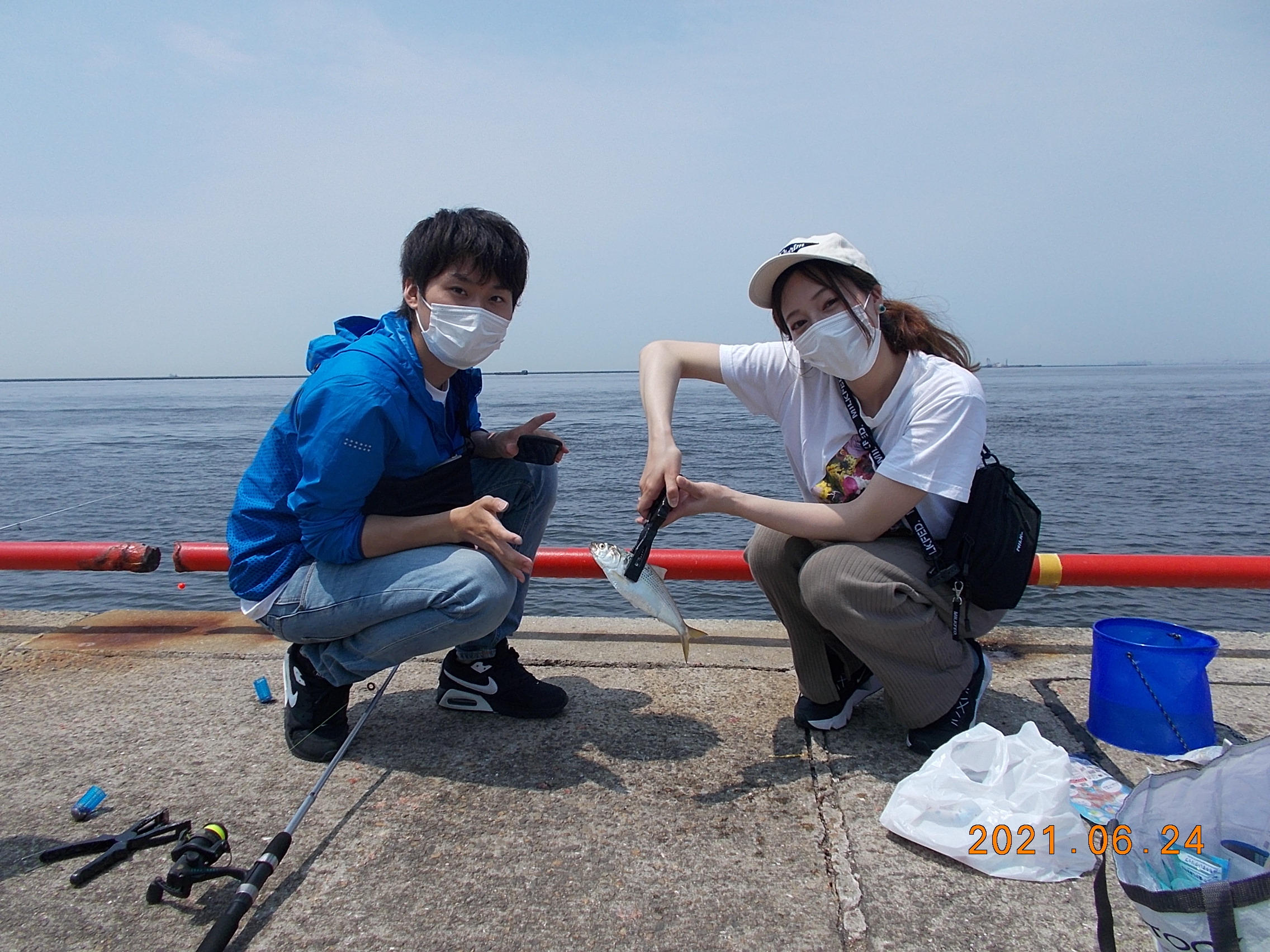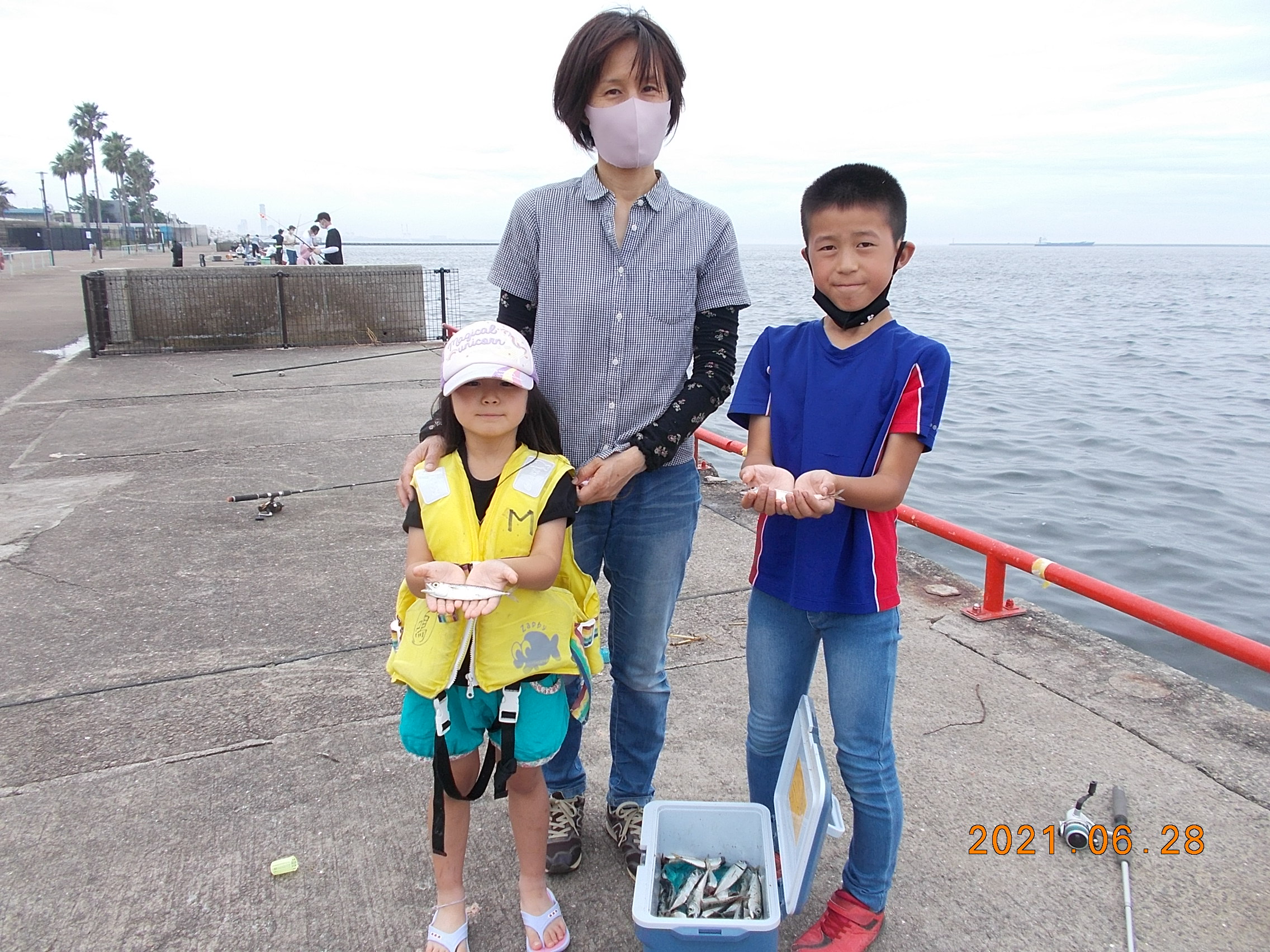 9時半現在、小サバは引き続き釣れています。一時程の釣果はありませんが止まる事無く釣れています。サビキ釣りで底狙いでコノシロが数匹釣れ、箕面市からお越しのご家族様が31㎝のコノシロを釣られ月間大物賞に登録致しました。