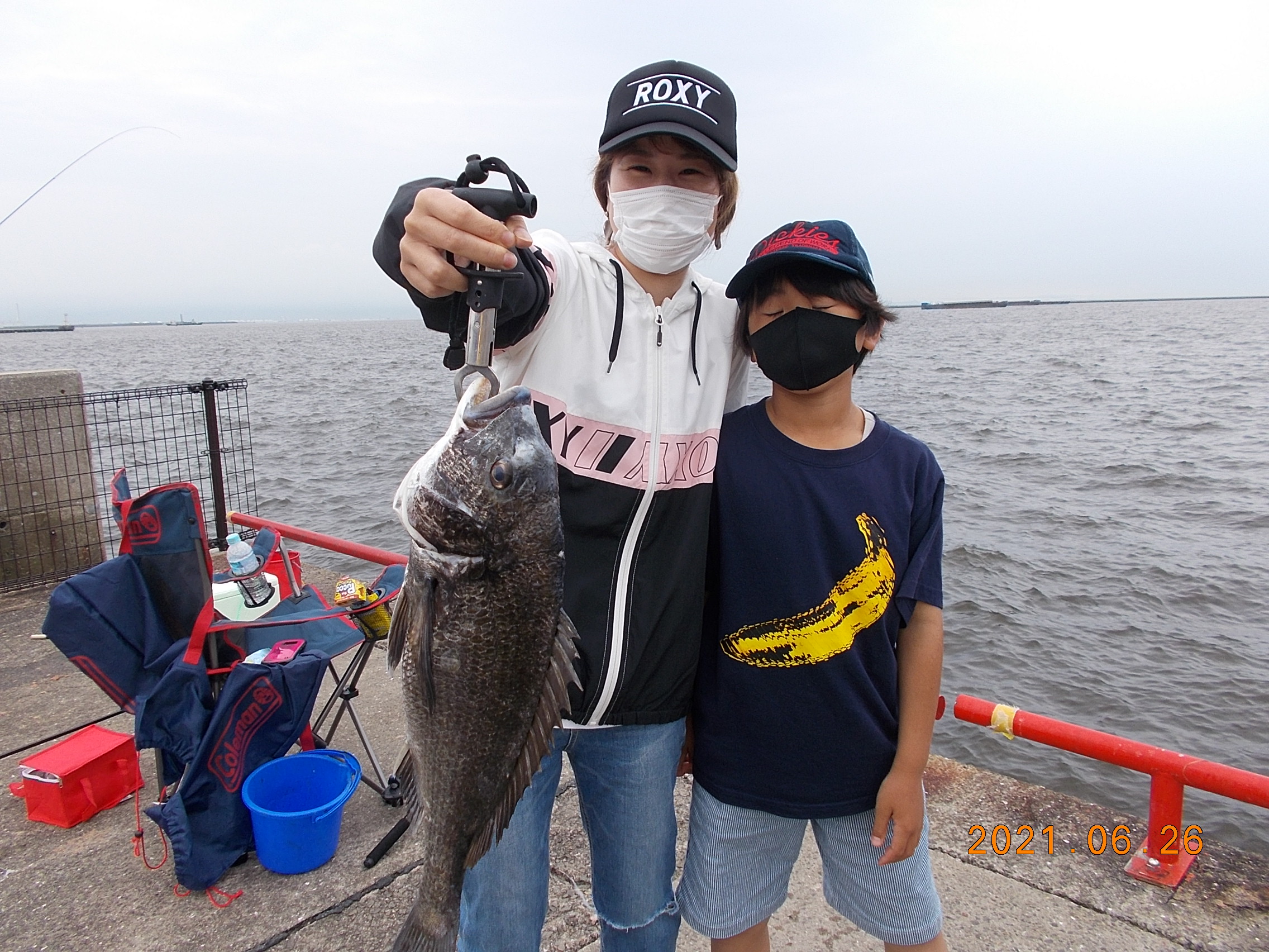 釣果の方ですが昼頃にお越しいただいたお客様で落とし込み餌イガイで25~48cmのチヌをなんと15匹キビレ42-43cm2匹で計17匹上げられています。サビキ釣りでの釣果は小サバとたまにサッパが釣れています。