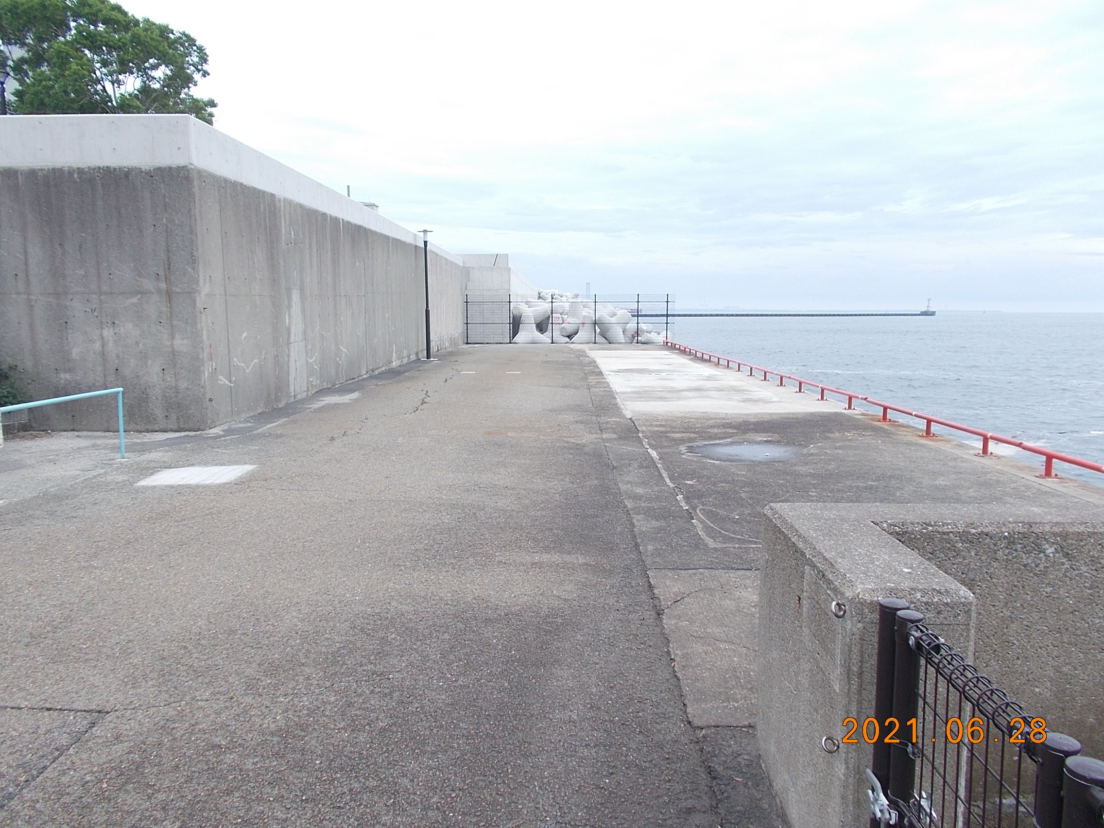東側で行われていた防波堤嵩上げ工事が終了し、海づり広場の東端テトラ帯を開放いたします。