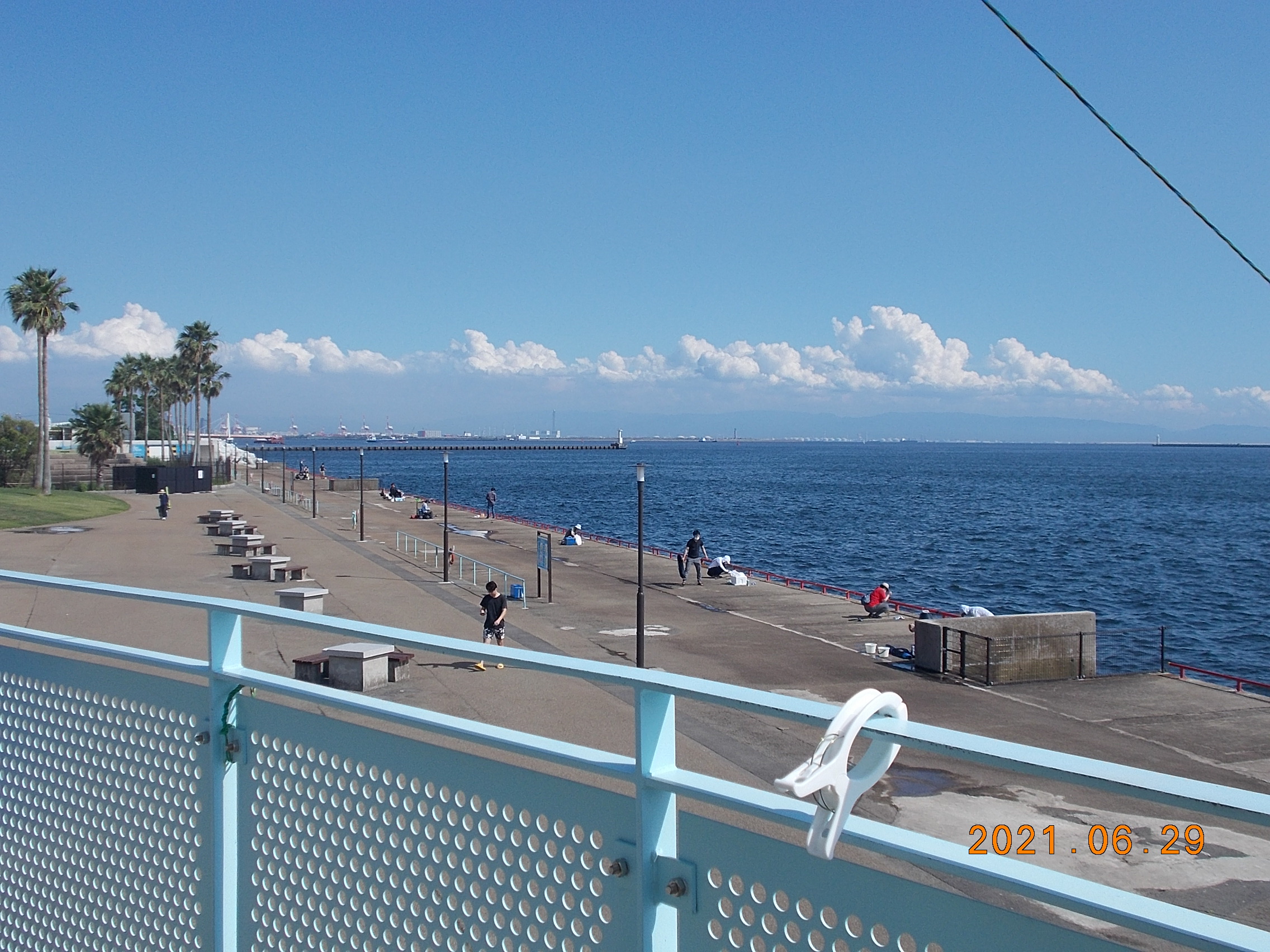 午後3時現在、南西の風3-5m、波少々あり、気温28℃。只今10人前後の方入場いただいています。心地良い南西風のおかげでそれ程暑く感じません。サビキでサバがほとんど。 -