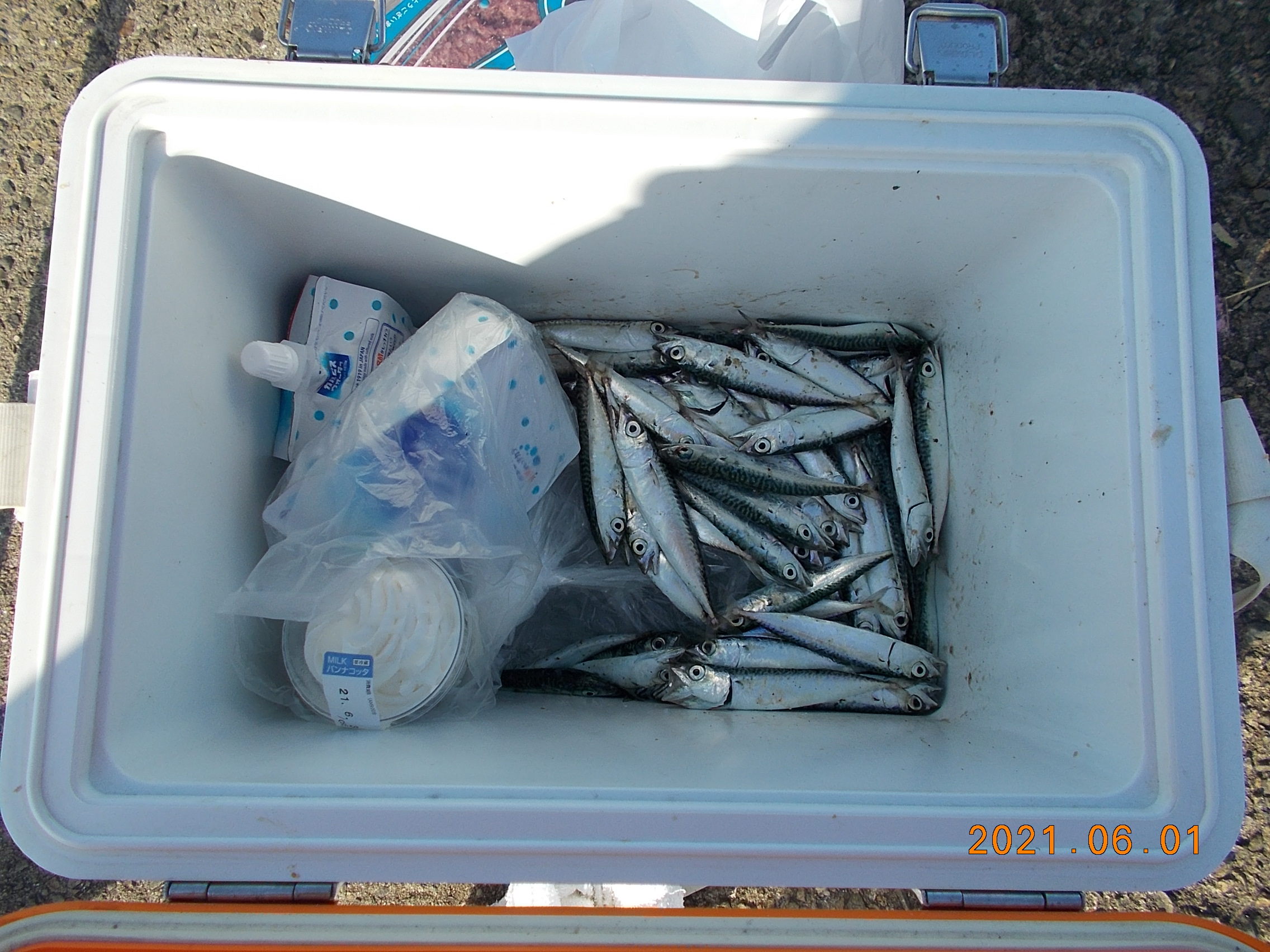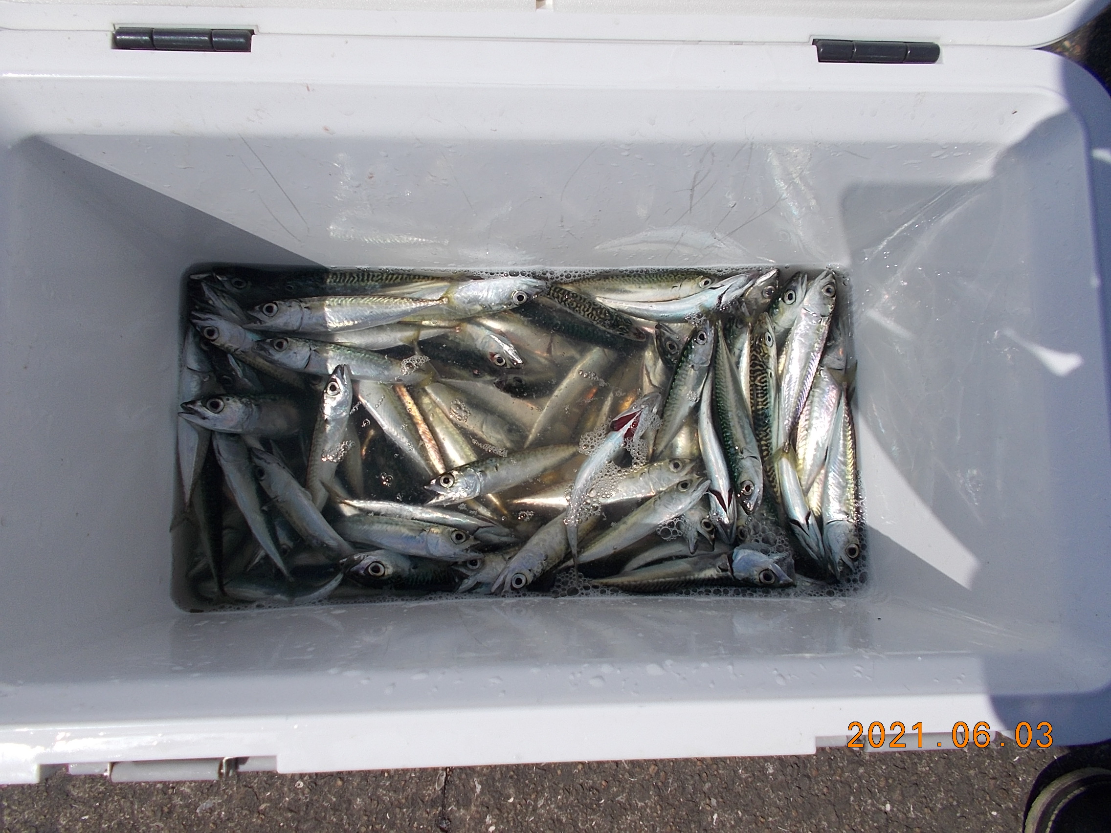 午後からも沢山の小サバが釣れています。一人家族50匹以上は持って帰っています。カタクチイワシと小アジが一瞬だけ回ったそうです。 -