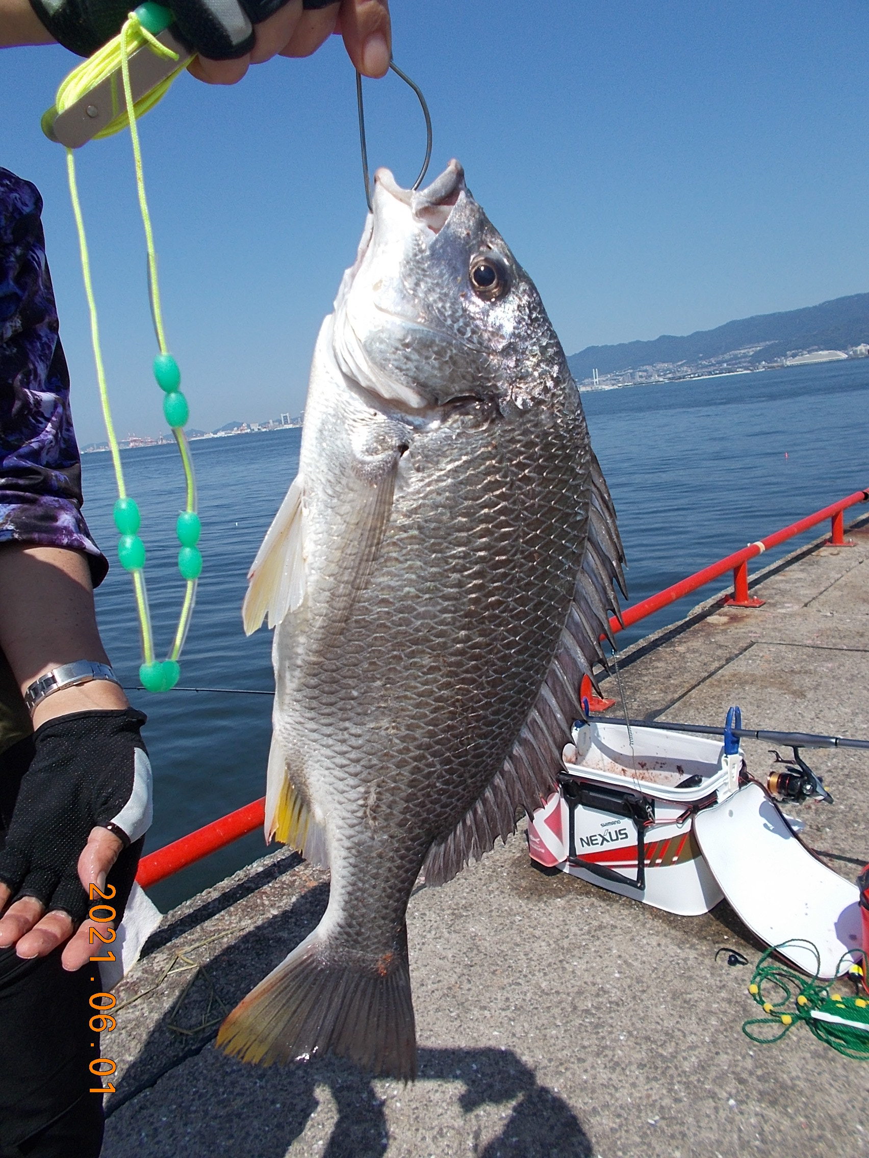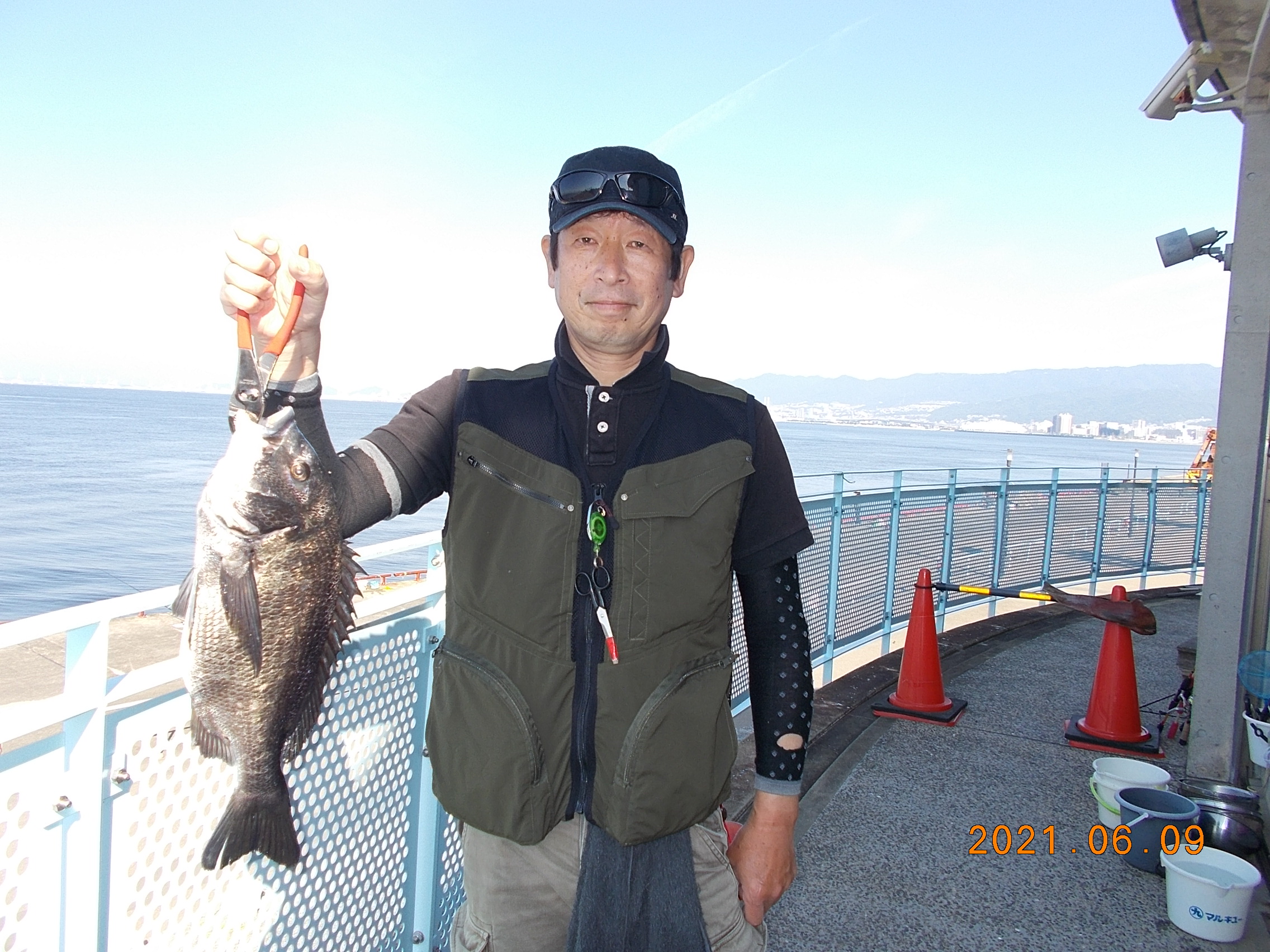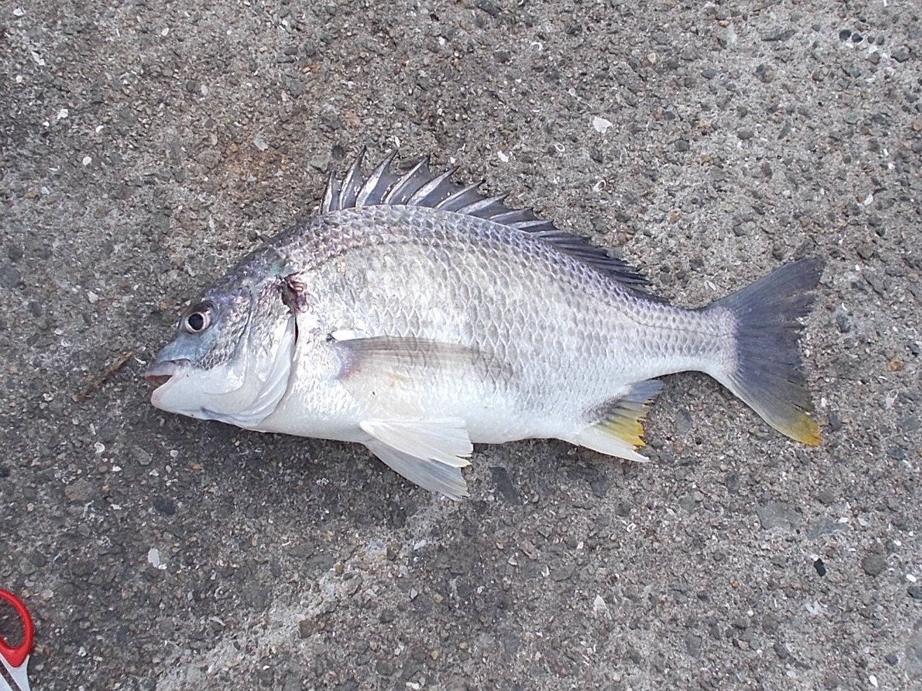午後からも同じ方がチヌ46cm上げられました、18時現在、監視塔前で二人のお客様が入れ食い状態で小サバとサッパを上げられてます。 -