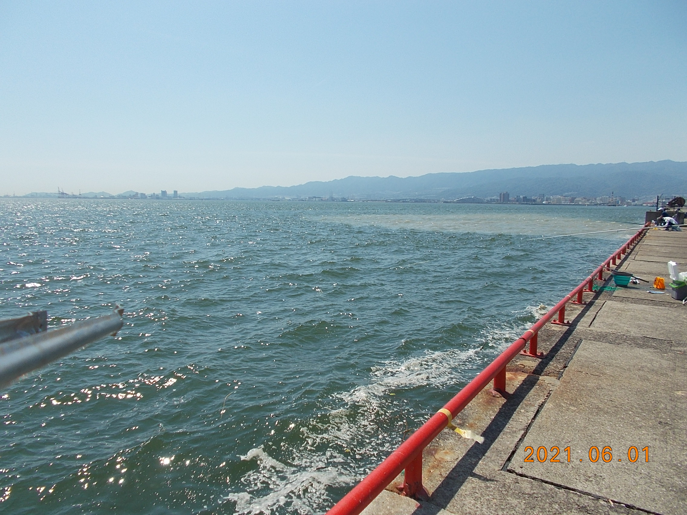 15時現在、南西の風(風速5m)波の高さ70cm広場の気温28℃と6月にしてはかなり暑いですが南からの強い風が気持ちよく感じますが釣りには向かい風のため皆さん苦労されています。