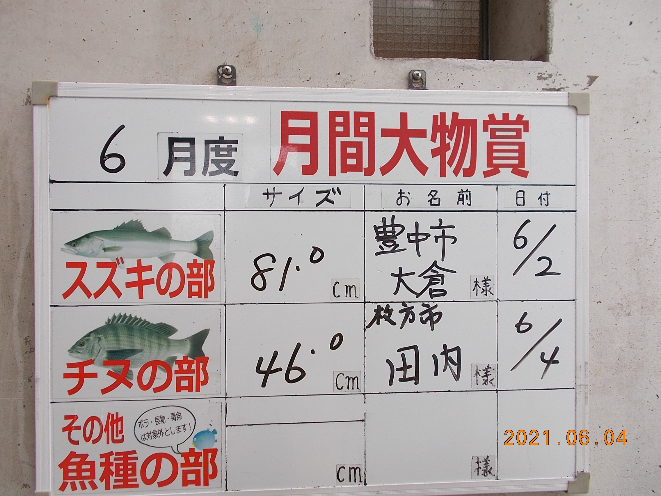 6月19日(土)に計画しておりました「親子サビキ釣り大会」は、緊急事態宣言延長に伴い中止とさせていただきます。