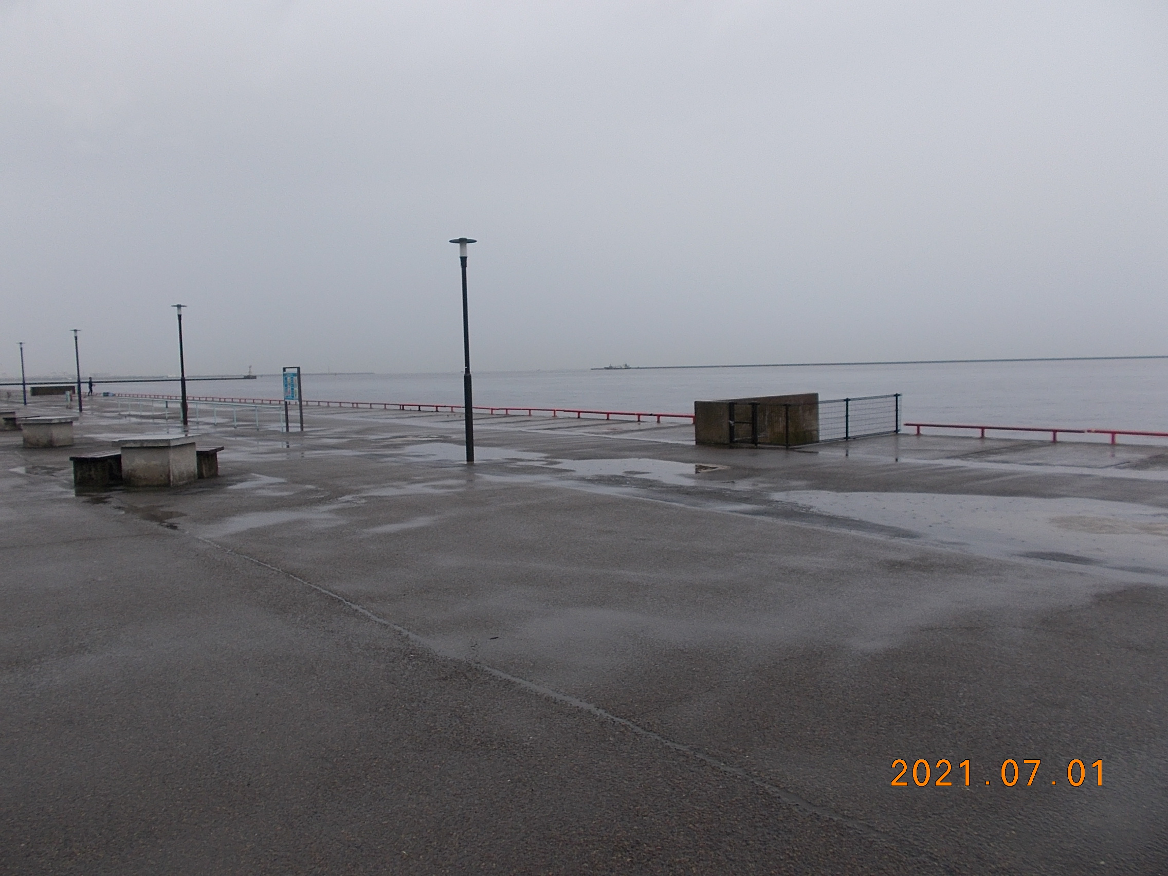 開園時、雨が降っています。風は北東の風 7m と、少しありますが、風うらになるため、そんなに気になりません。波は穏やかです。