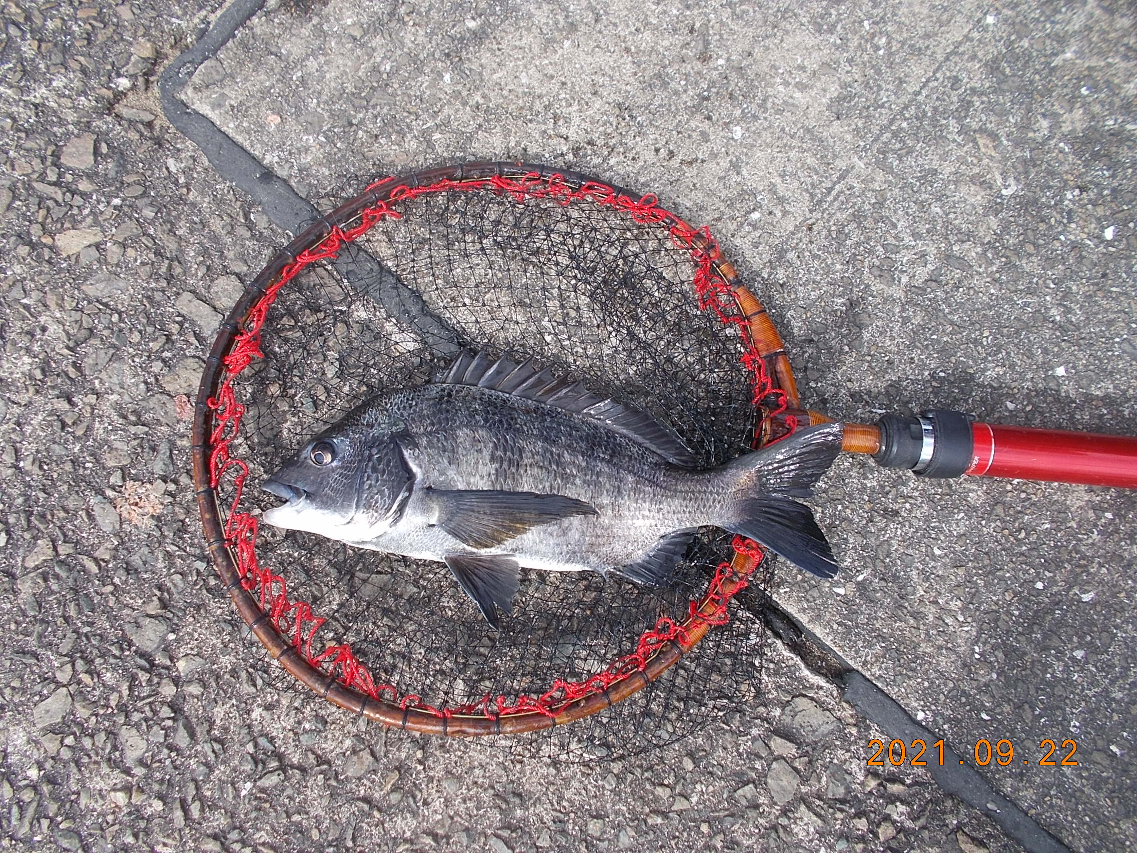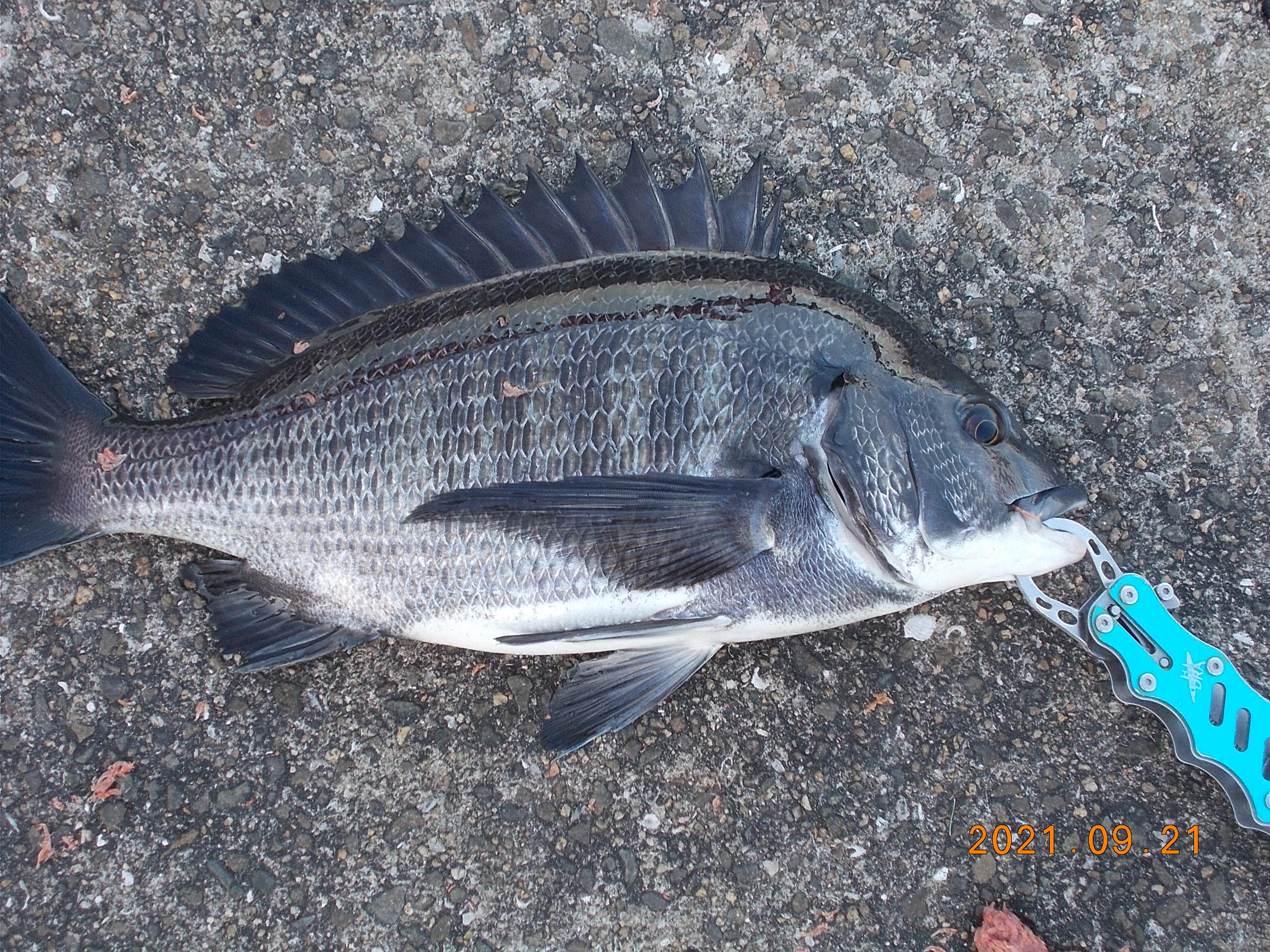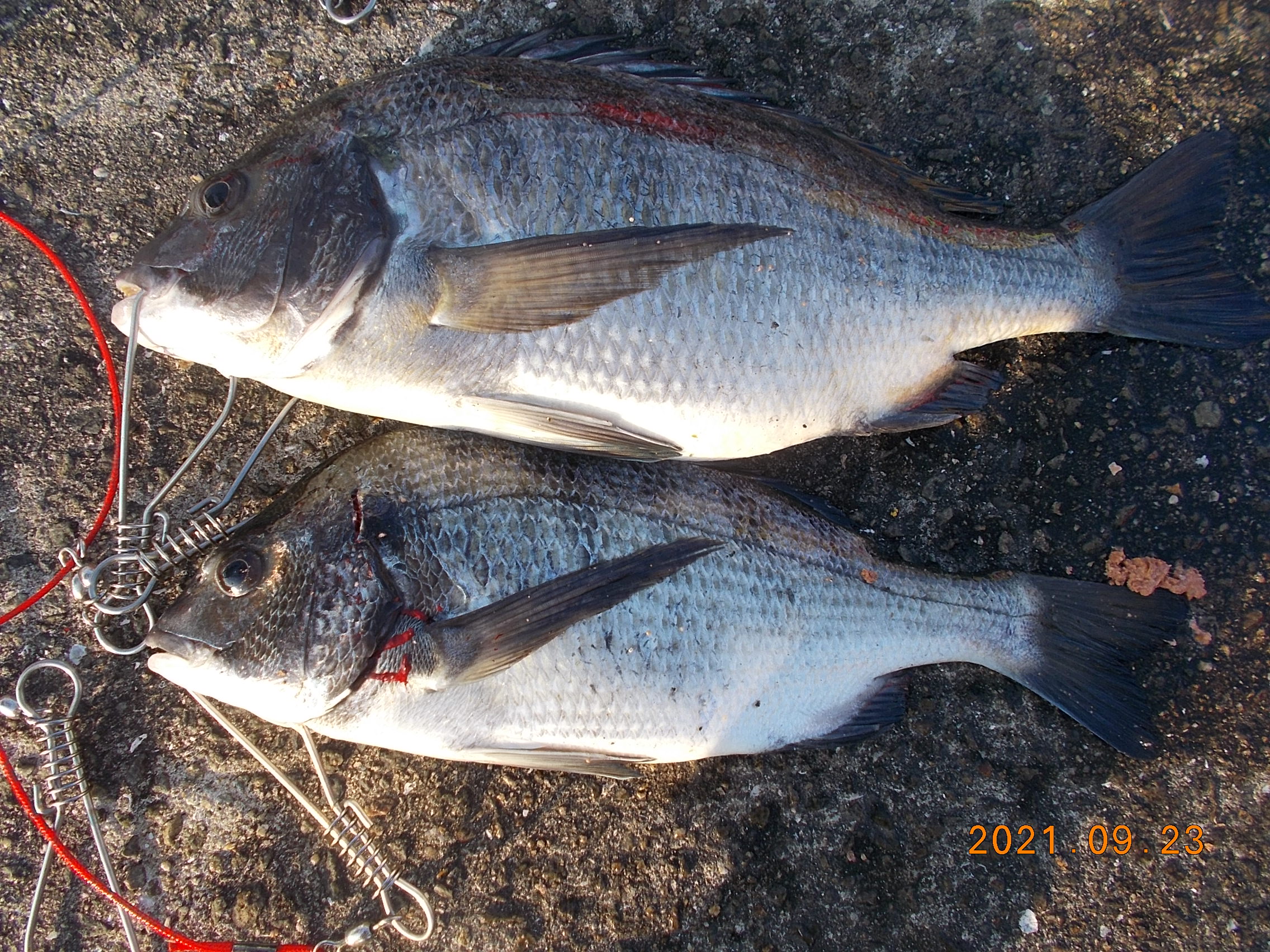 午後4時に西でチヌ47cm上がりました。餌オキアミ。その後5時頃に40cmチヌ追加。これも餌オキアミ。 -