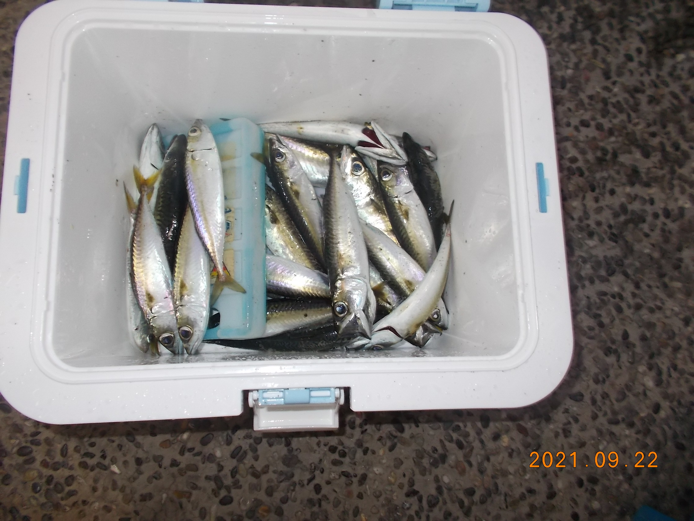 7時現在、39名の方がいらっしゃいます。午前8時頃に釣れだしました。相変わらずサバは沢山釣れています。サヨリも10匹程、カタクチイワシやマイワシも少しずつ釣れて来ています。