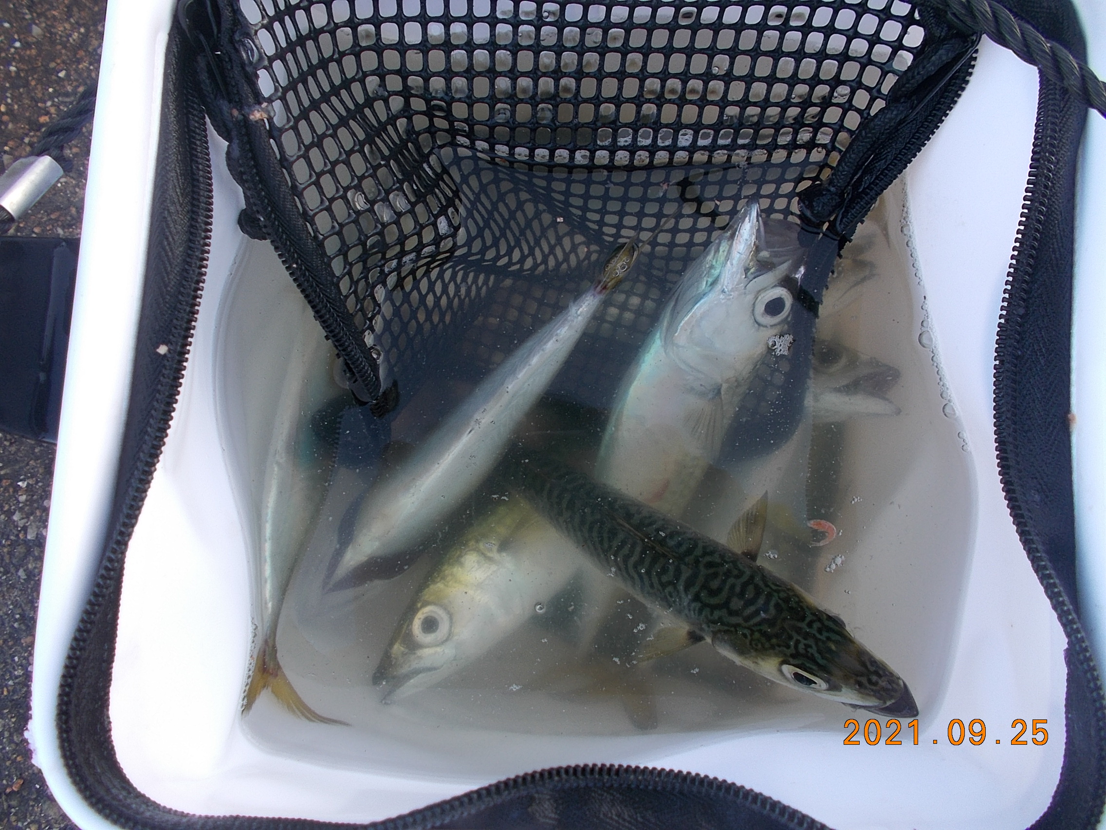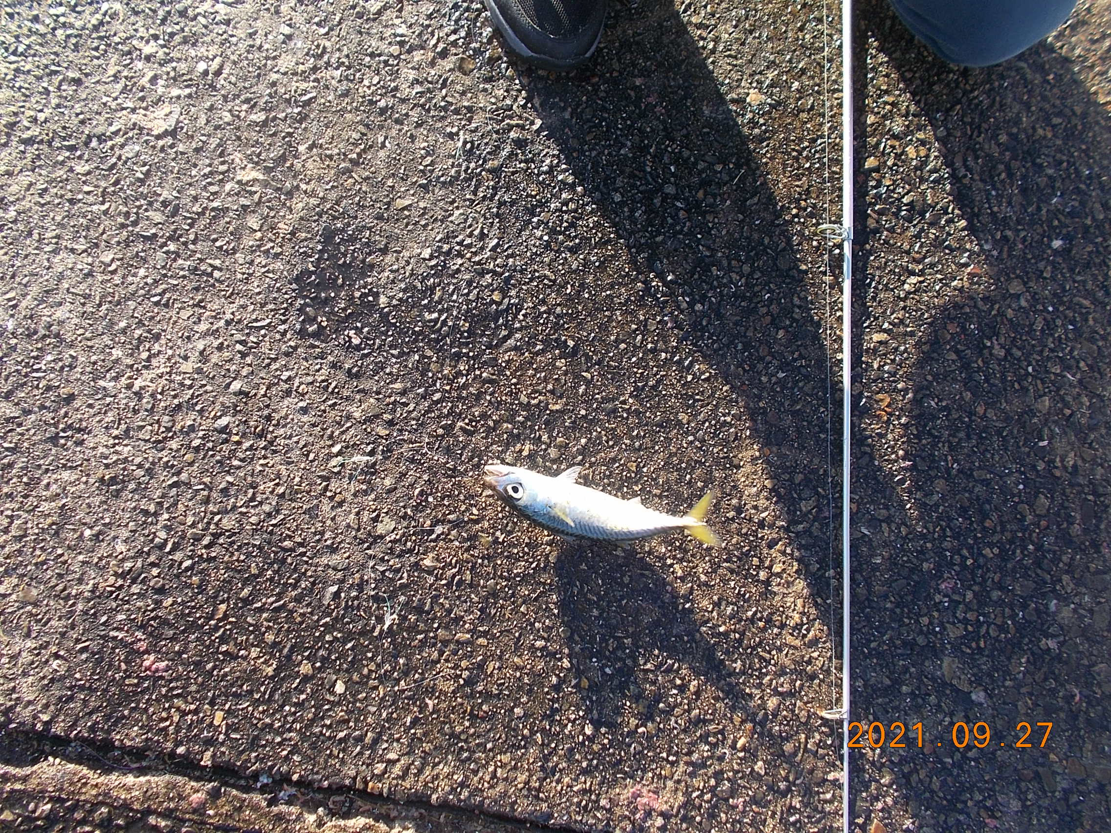 午後は南東の風0.5m、晴れ、気温27℃。ほぼベタ凪。陽射しがきつくサヨリ釣りによいかと思われましたが群れが見られず上がっていません。時折サバのみ。