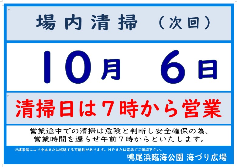 【 次回の場内清掃日は10月6日(水) 】