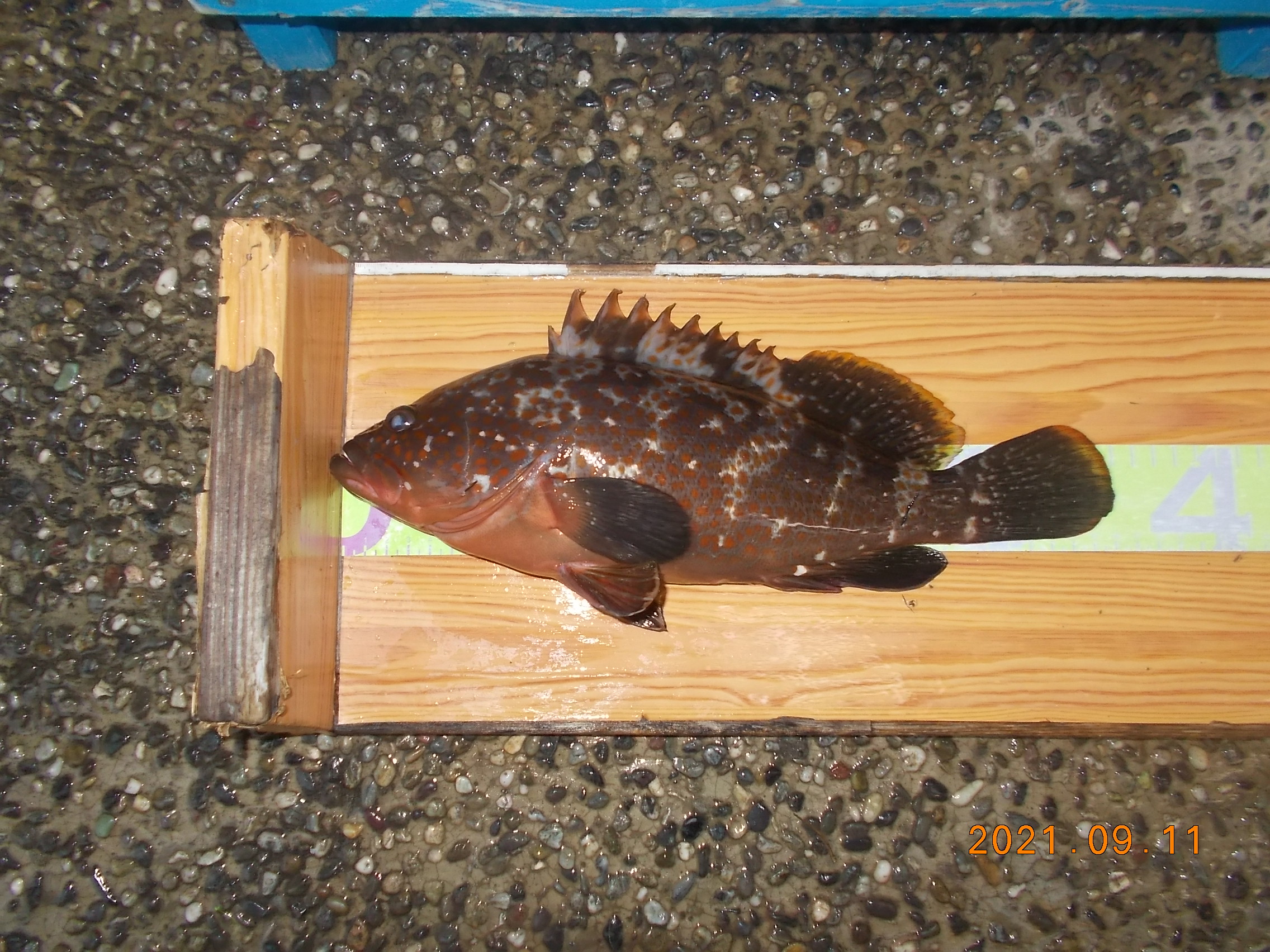 早朝6時頃鳴尾浜でアコウが釣れました。餌はシラサエビで底で大きさは32㎝でした。今は規制がかかっていますがその中でも皆さん楽しそうに釣りを楽しんでおられます。