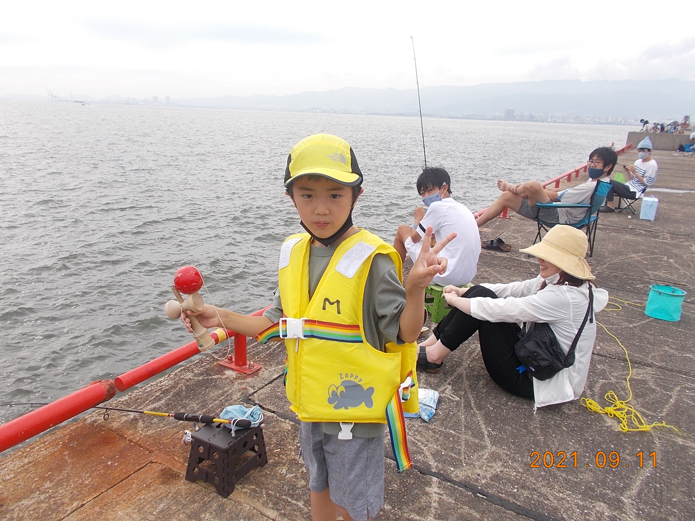 昨日同様、開場前で満員となり沢山のお客様がご来場頂いています。朝からサバが釣れて、子供さんは大喜びで釣りを楽しんでいました。釣台中央付近でダンゴ釣り(餌:コーン)をされている方が42cmのチヌを上げられていました。しばらくして、カタクチイワシの群れが回って来て鈴なりになって釣れだし、皆様大喜びで数釣りされています。