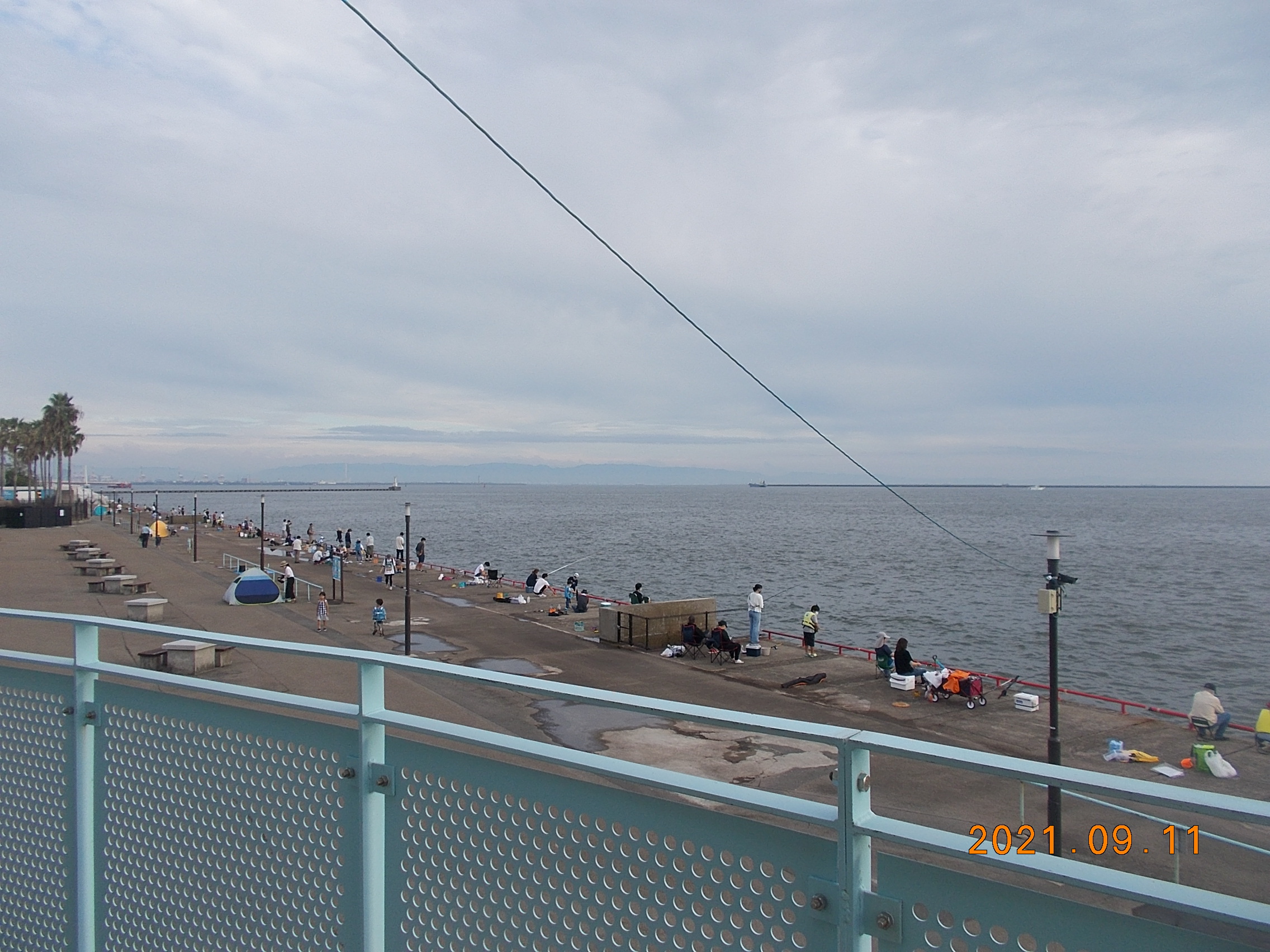 お昼から打って変わって蒸し暑い鳴尾浜です。只今50人前後おられます。個人個人で釣りを楽しんでおられます。