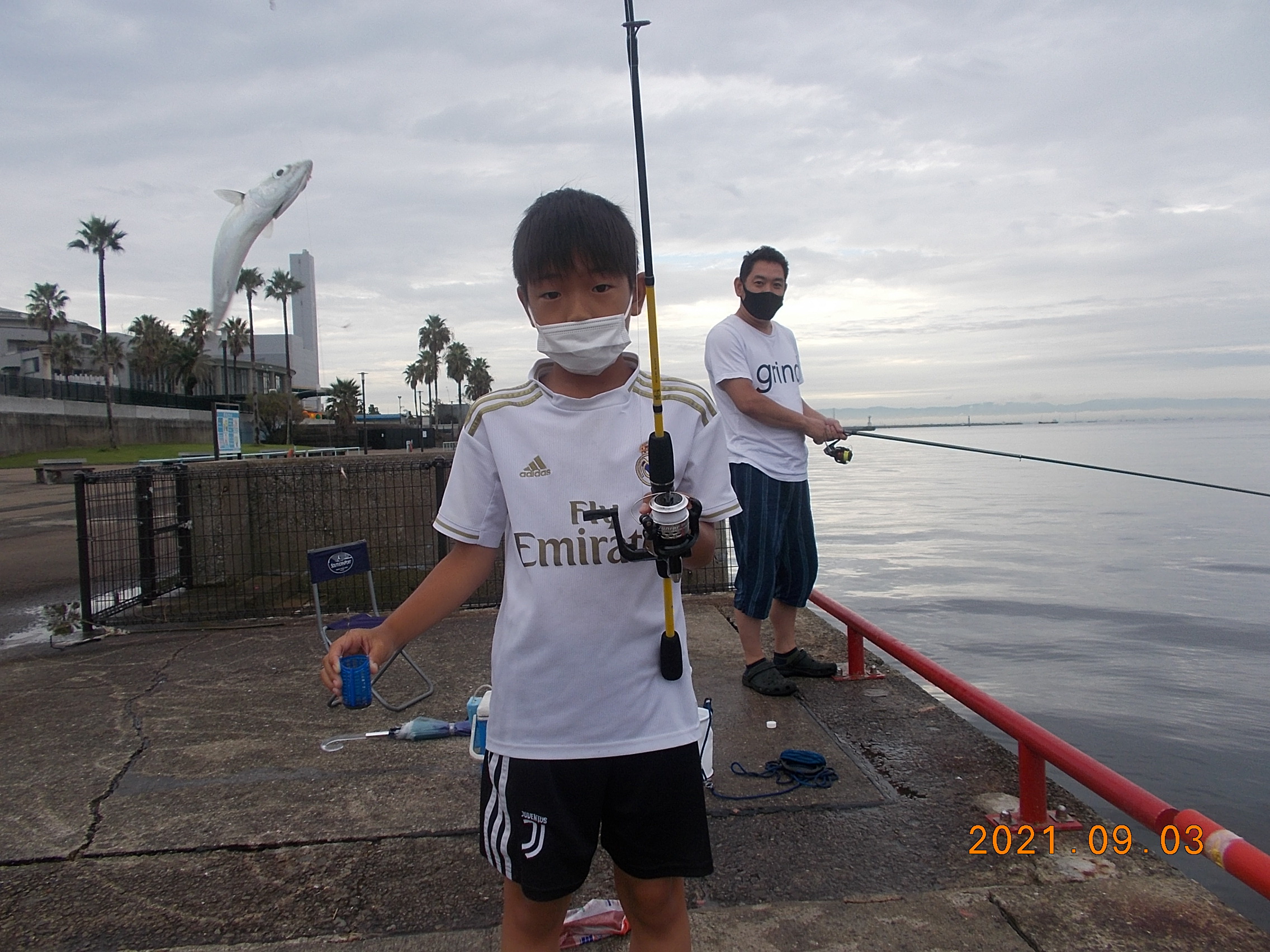 本日はサヨリ狙いの方が多く来られ、竿を奮っていらっしゃいました…が、先日までの勢いがカクッと下がってしまい、渋い釣果となっています。理由は2個、1個は潮の流れが右に右に(西、神戸方面)流れ、仕掛けを落ち着いてキープできない事と、もう1個は「当たった!」と思ったら「グゥーー」っと下に引っ張るサバ当たりばかり…、サヨリは居るけれど先にサバが掛かっていました。