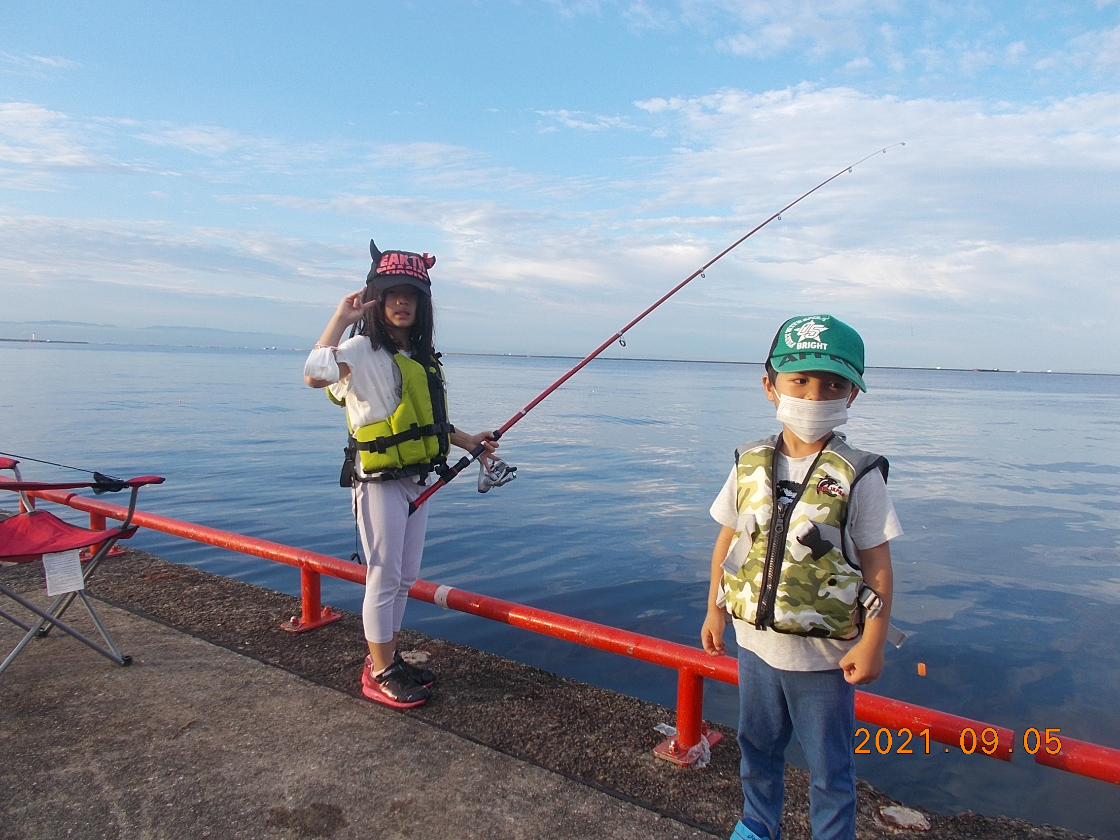 開園時、波風共に穏やかな朝です。8時半現在、沢山の家族連れのお客様が釣りを楽しんでおられます釣果の方はサバがメインで朝方にカタクチイワシ、が釣れていましたが今の時間帯は釣れていません。サヨリの釣果もイマイチです、12時現在、気温も30℃を越えて暑くなっています。