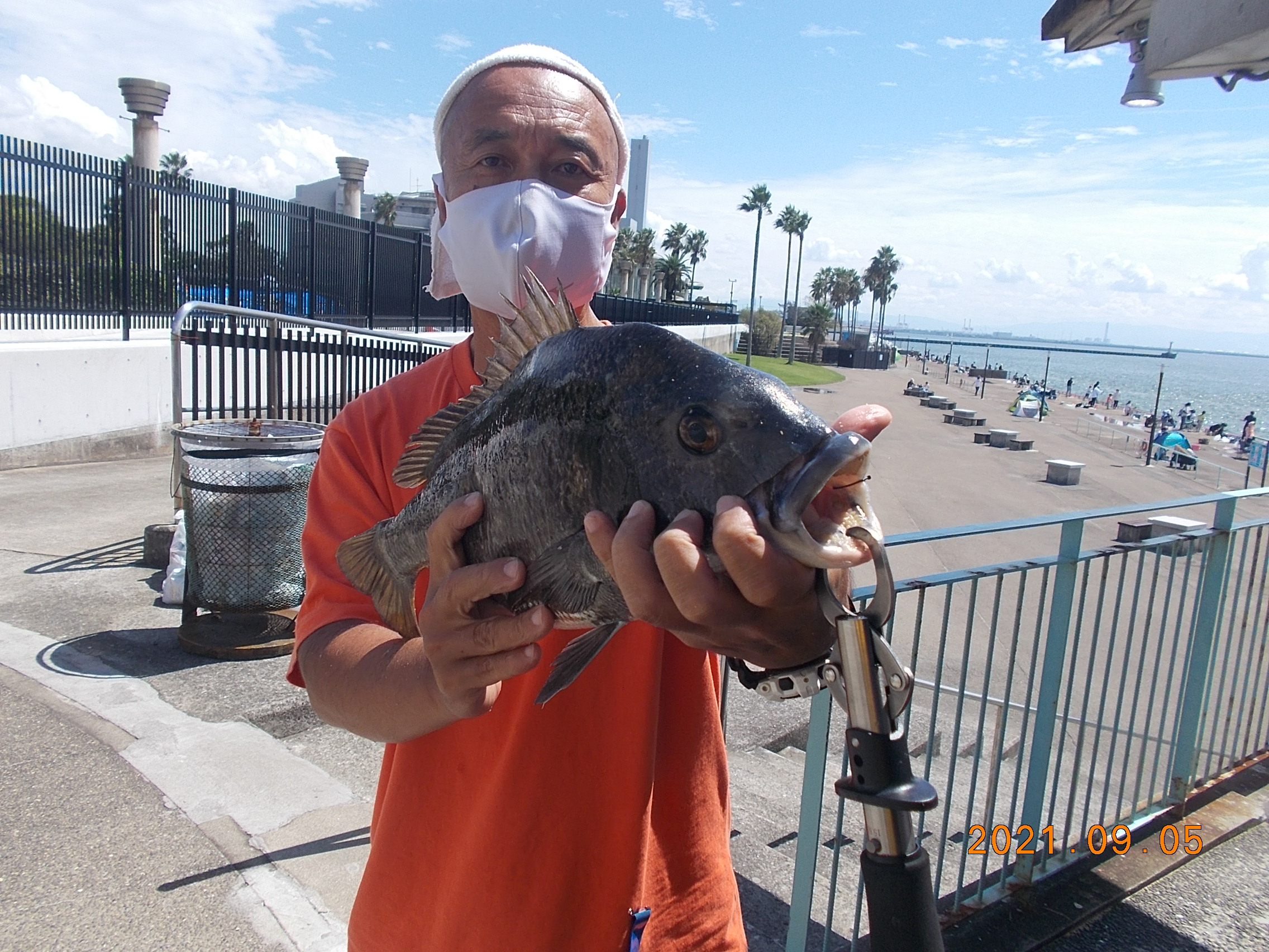 11時頃チヌが上がりました。紀州釣りで餌はオキアミとコーンで棚は底との事です。