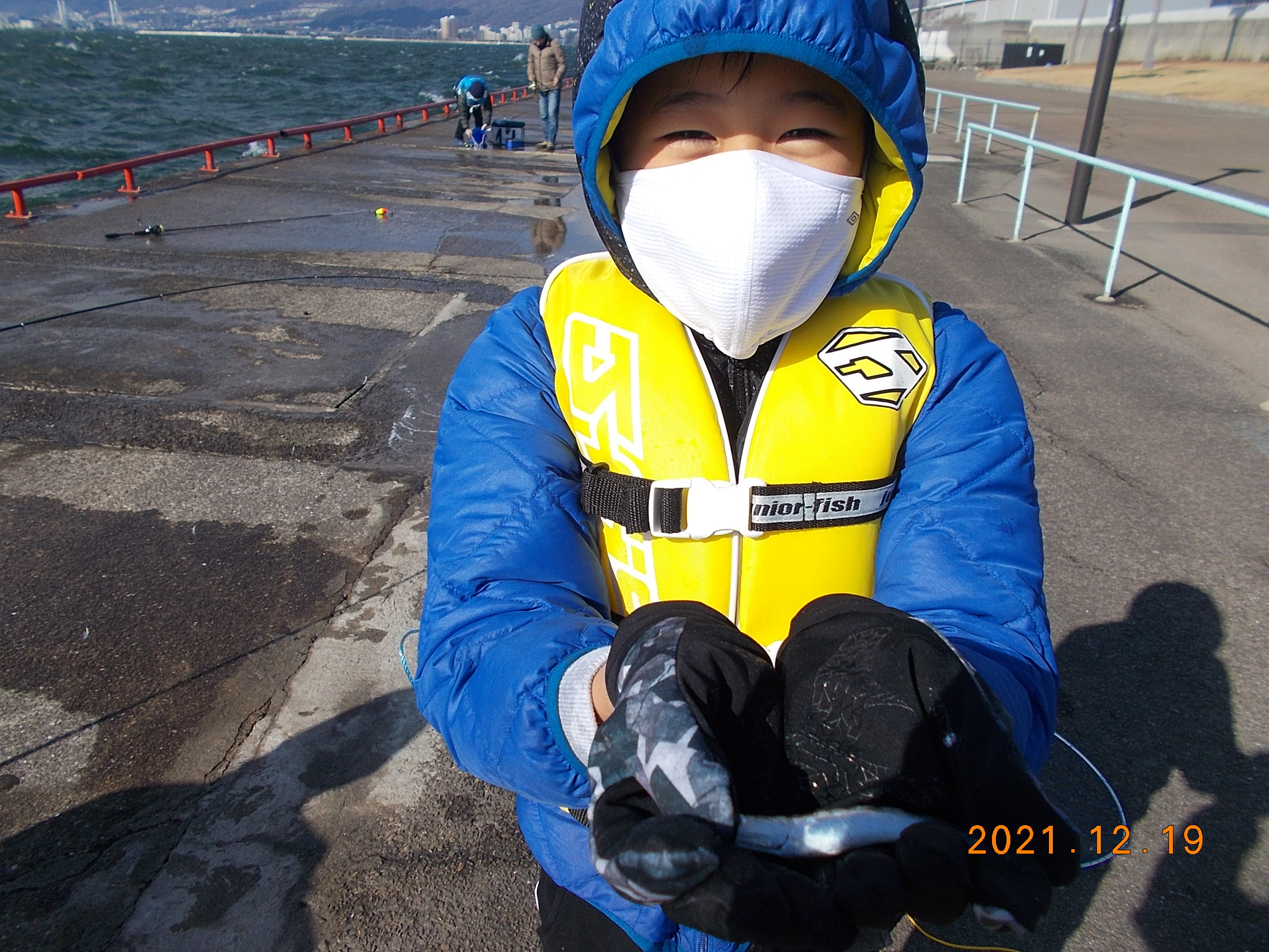 開場時には風も少しおさまり、白波も立たなくなっています。今年最後の海づり広場ですので存分に楽しんでください。9時前ぐらいにカタクチイワシの回遊があり、サビキ釣りにイワシとサッパが掛かっていました。久しぶりの釣果です!