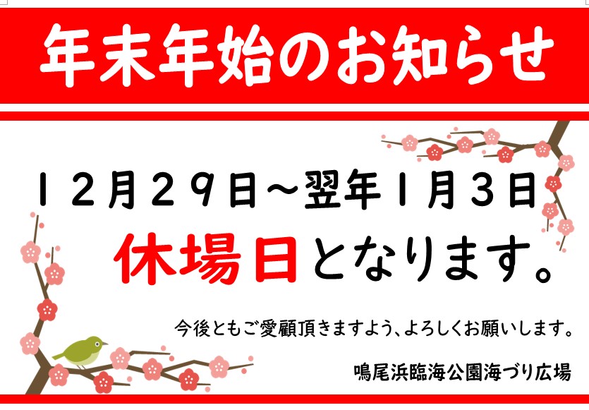 なお、また強風により潮が釣り台に打ち上がり、危険と判断した場合は再度臨時閉場いたします。ご理解お願い致します。