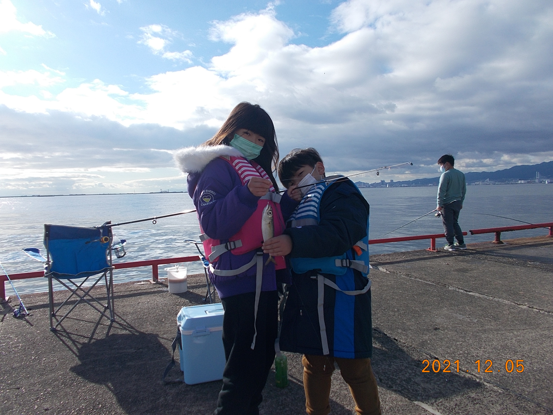 今朝から風が強くて波が高く、釣りをするには厳しい状況です。それでも、子供さん連れのご家族の方がサビキ釣りで頑張っていらっしゃいます。