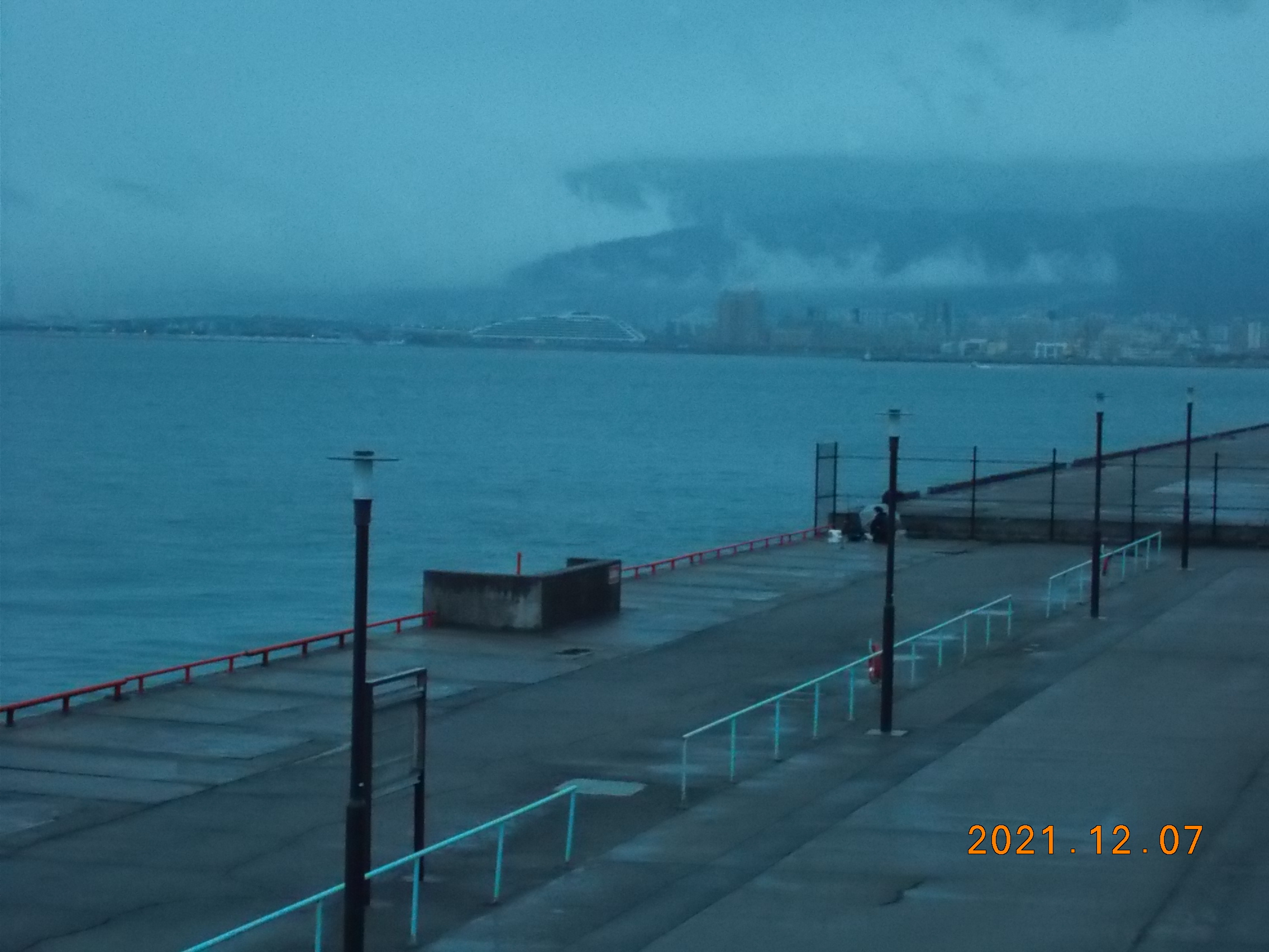 16時現在、波風は穏やかですが雨はまだ降り続いています予報では18時頃には上がりそうです。