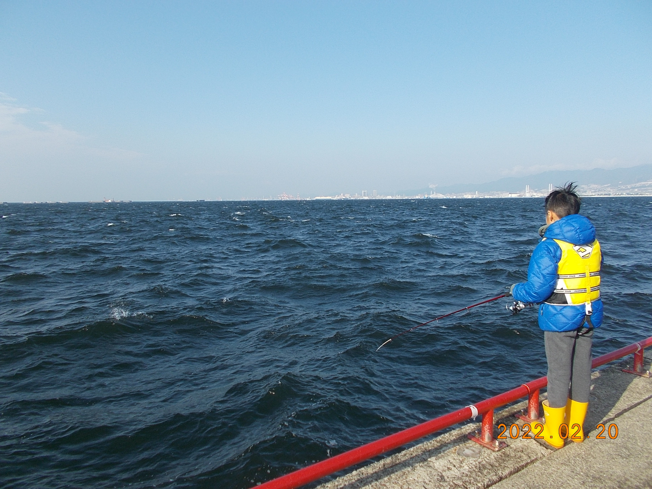 今、15時30分西9m/sかなりきつい風が鳴尾浜に吹いています。それでも3人のお客様が釣りを楽しんでいただいています。残念ながら釣果の無しです。