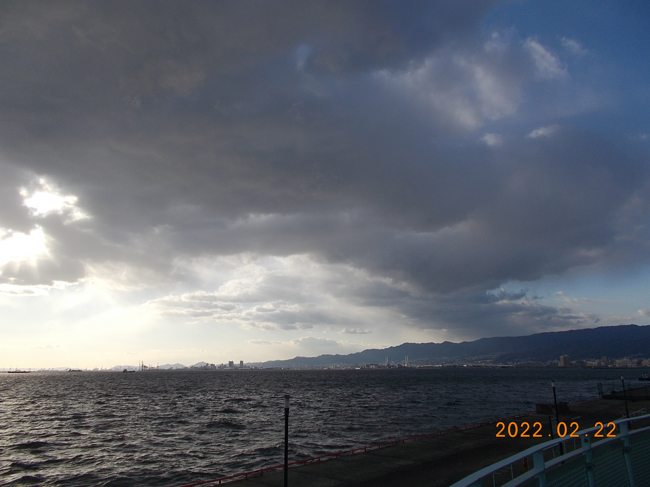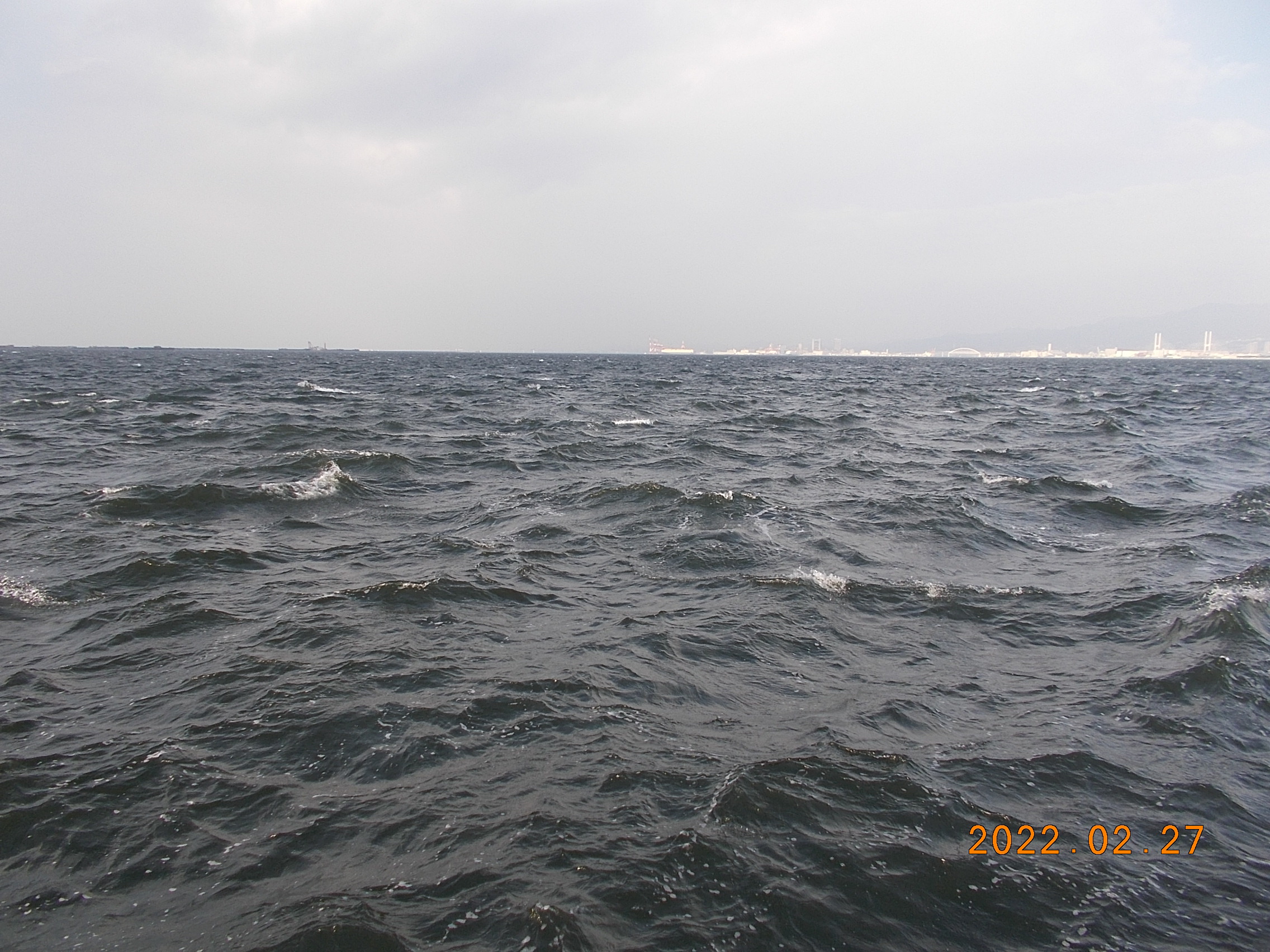 西風5~6m、白波が立っています。風が強く体感温度が2~3℃低く感じられます。防寒対策をしてお越しください。