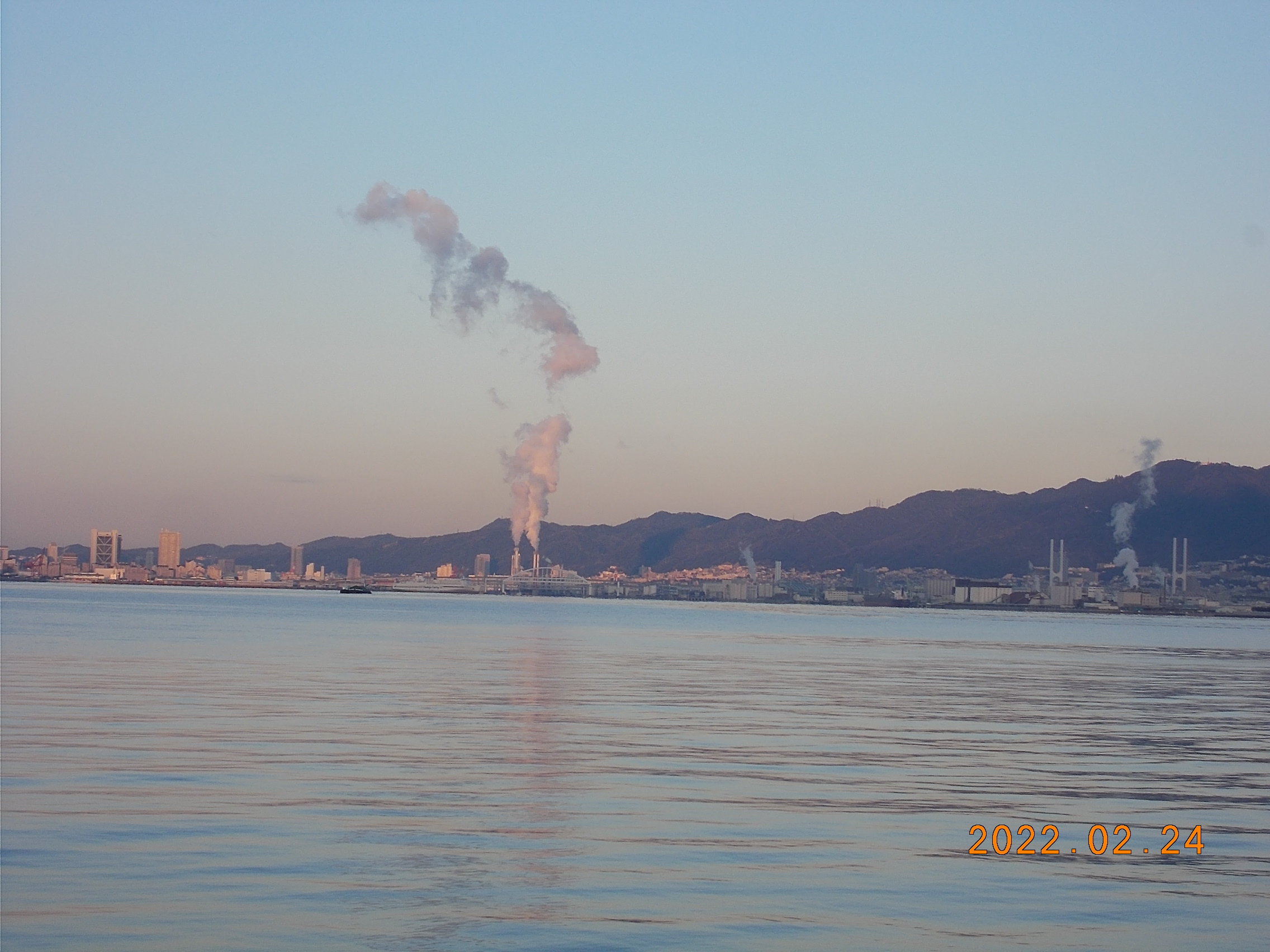 早朝6時、風はありませんが海は少し波立っています。